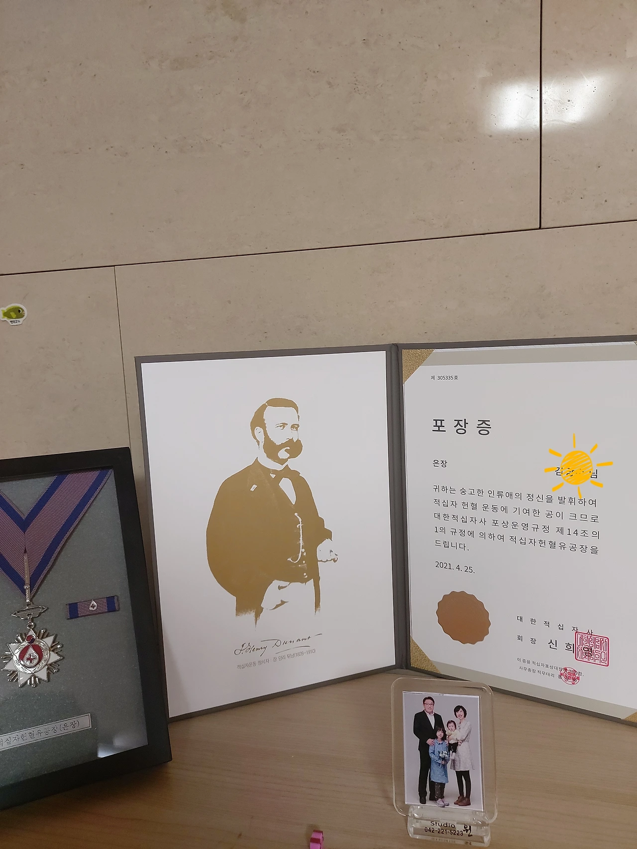 남편의 간지나는 위풍당당 유공장은 거실에 비치되었다. 내가 다른일을 하는 사이 언제 놔두었는지도 모를 정도로 남편은 빛의 속도로 유공장과 포창장? 포공증을 함께 자리해두었다. 집에 오는 분들이 모두 이 유공장을 보고 한마디 거들어주기를 바라고 있다. 아이를 돌보러 오시는 돌보미선생님이 혹시 보셨을까? 물어보기도 하고(아니, 거들떠도 안보시던데?) 간지나지? 스스로 으쓱하기도 한다.