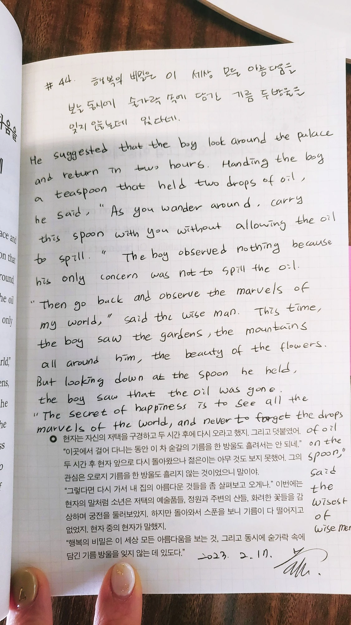 김포그림책모임 오픈채팅방에 영어필사를 함께 하실분! 하고 툭 던져보았다. 2023년의 첫해를 시작한 시점이기도 하고, 평소 영어에 관심이 있는 분들이 있어서 신청자가 제법 모였다. 내가 선택한 영어필사 책을 주문하고 하루하루 영어필사 부분을 카톡방에도 올리기 시작했다.