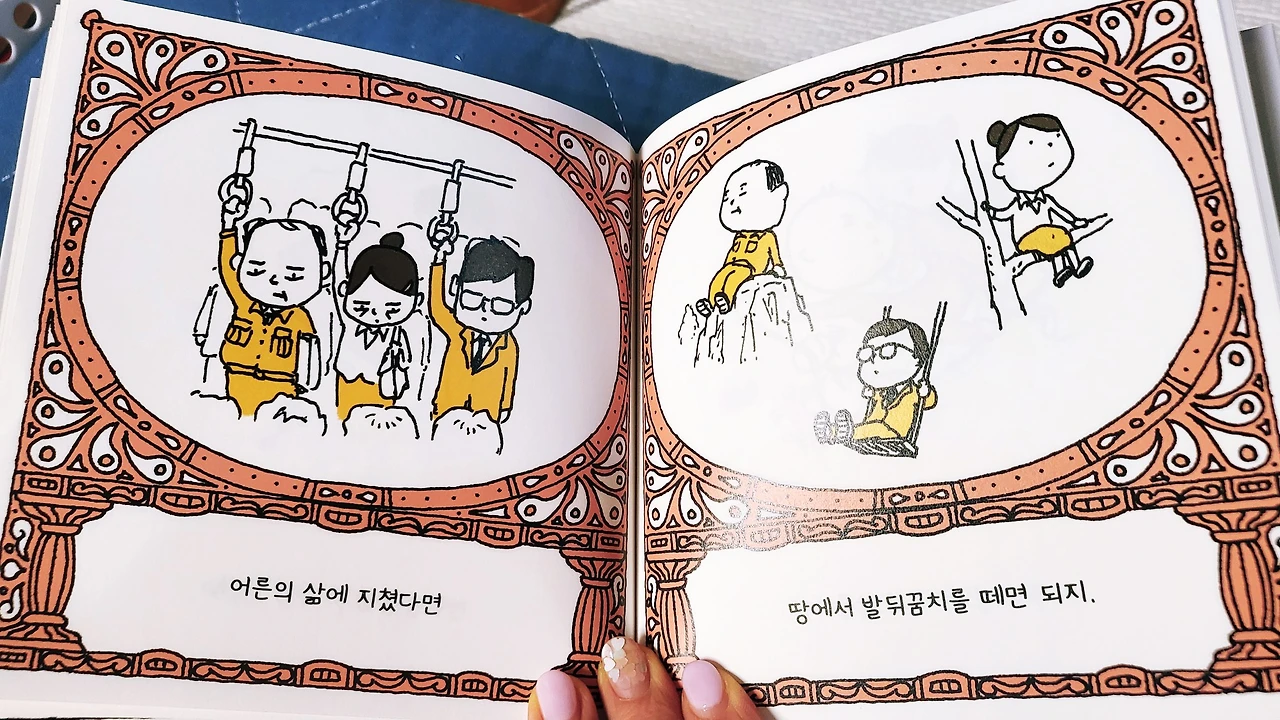 나의 지금을 있게 만들어 준 가장 큰 부분은 역시 "육아"다. 육아라는 세계는 학교에서, 직장에서 배울 수 없었던 상상 그 이상의 세계를 나에게 선물했다. 책을 가까이 하고 싶었지만 쉽게 접할 수 없었던 그 시절에 나의 아이와 함께 하는 육아라는 과정에서 책과 그림책 세상 속에 스며들 수 있었다. 집 가까이에 있던 작은 도서관을 매일같이 드나들면서 책의 재미를 알았고, 그림책의 재미를 알아갔다. 무엇보다 내가 읽어주는 그림책을 눈을 똘망똘망 뜨고 기다리며 즐거워하는 아이 덕분에 나는 그림책이라는 세계와 연결되었다.