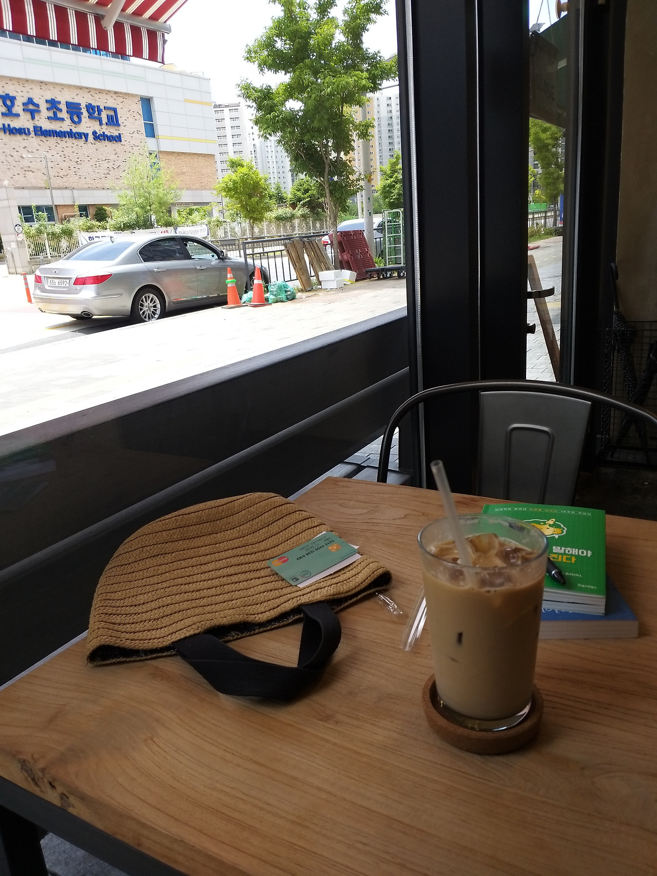 아이의 학교 앞에서 아이를 기다리며 책을 본다. 시원한 커피 한 잔이면 충분하다.