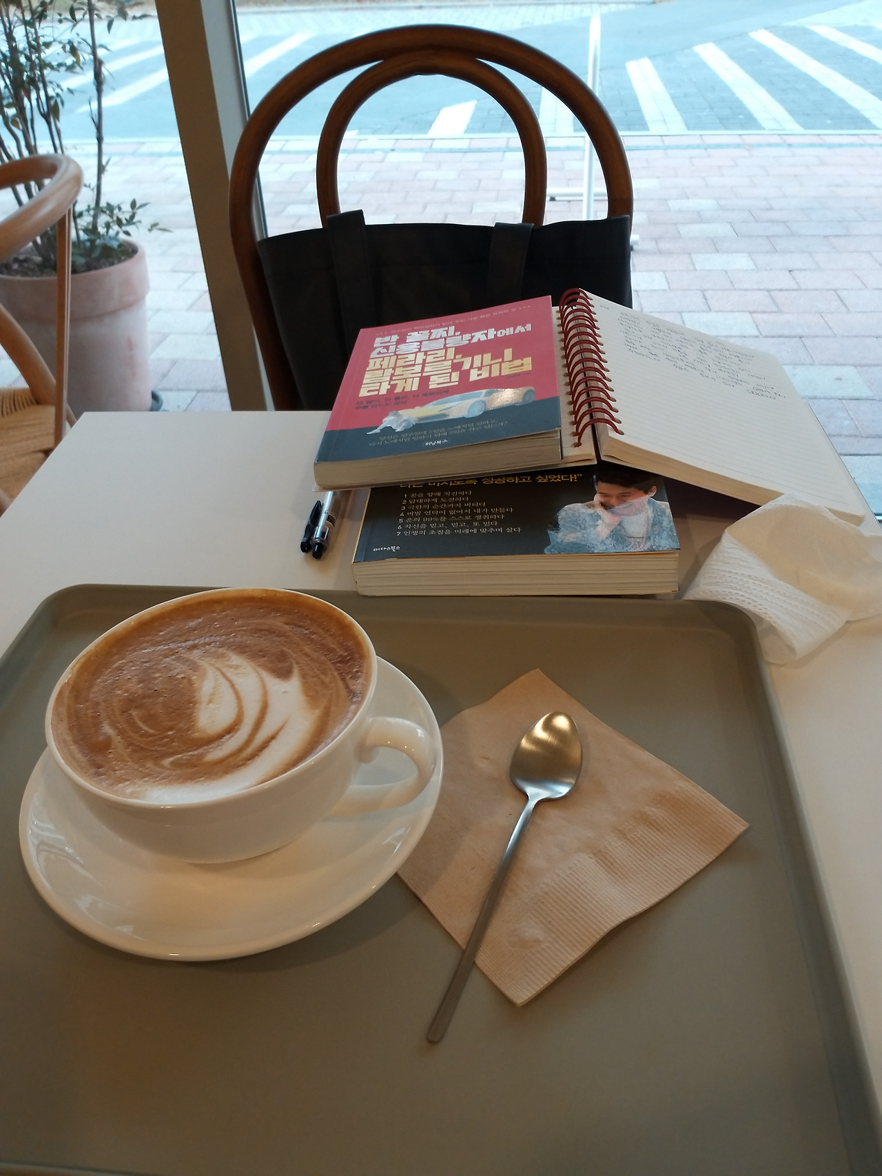 집에서 큰 사거리 횡단보도를 건너편 나타나는 호호 브레드 빵집 그리고 카페. 빵이 즐비하게 준비되는 시간 오전 8시. 매일 그 시간에 나는 그곳에 출근도장을 찍었다. 책도 쓰고 원고도 마무리했다. 계단을 따라 올라가면 2층 구석진 자리에서 노트북을 켜고 책을 펼쳤다.