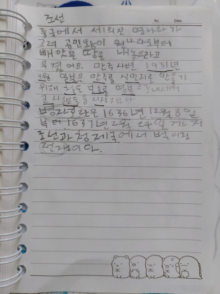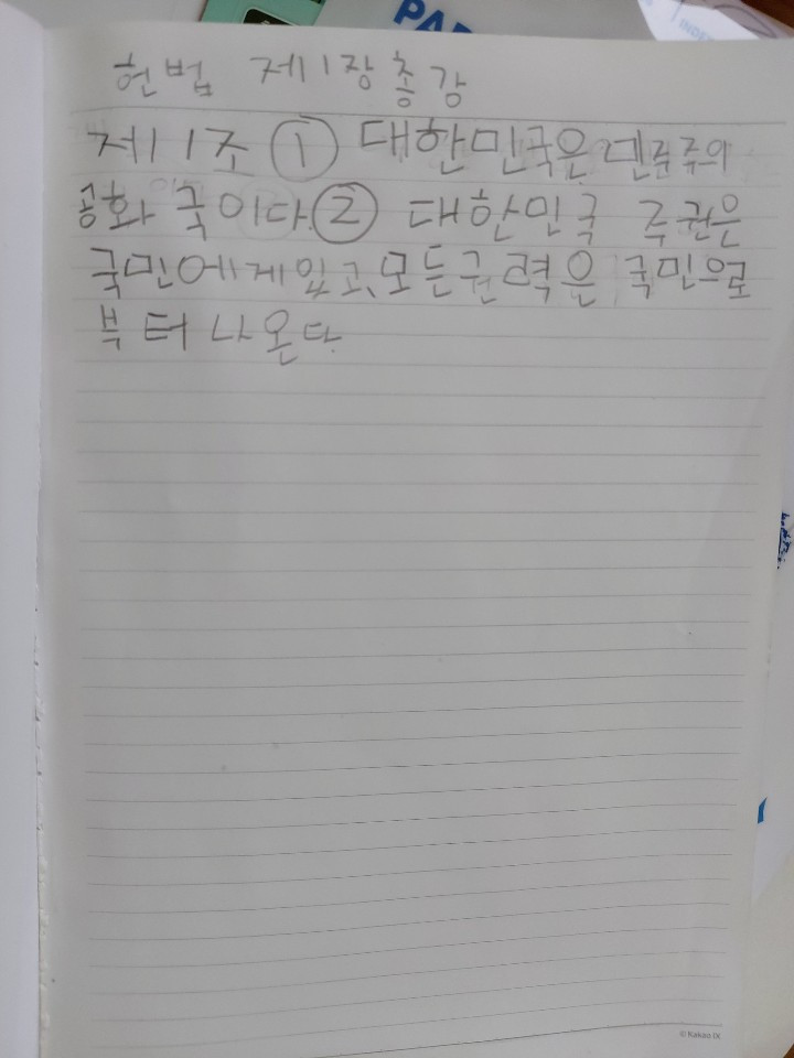 그리고 마오쩌둥은 1976년에 사망했다. 아이 덕분에 또 하나를 알게 되었다. 내일이면 또 까먹겠지만. 한국사에 관심을 가지고 자신의 꿈이 판사라고 말하는 딸. 어제는 일하는 중에 영상통화를 하면서 법을 물어보았다. 1조 1항과 같은 법률말이다. 그건 구글에서 검색해봐~ 말했더니 자신이 검색을 한 모양이다. 1조 1항은 이러 이러한 것이다. 자신의 수첩에다 굵직굵직하게 적었다. 그걸 영상통화를 통해 읽어주고 보여준다. 수첩에는 아이의 흔적들이 고스란히 담겨있다.