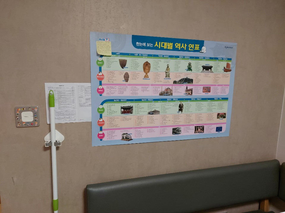 알 리가 없는 나는 벽에 걸려진 역사연표에서 찾아보자고 했다. 아이가 한국사에 관심을 가지고 역사에 대해 조금씩 물어보기 시작하더니 내가 답을 해 줄 수 없는 범위까지 넘어설 때가 많았다. 최근 방문한 서점에서 학습 행사차원에서 한국사 연대표를 준다고 했다. 나는 원래 이런 홍보물이나 책자를 거절한다. 거의 100프로다. 그런데 그 날은 마침 정말 필요하던 역사연표 였으니.. 귀찮은 작성지를 대충 작성하고 혹시 연락이 오면 안한다고 하면 되지,, 생각하며 얼른 역사연표를 챙겼다.