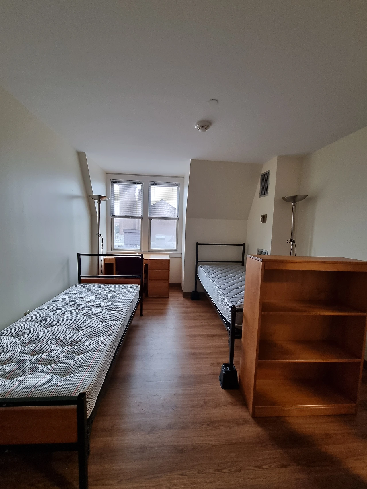 막내가 기숙사방 경관을 확인하고 있다. 오른쪽 침대를 쓰기로 했다