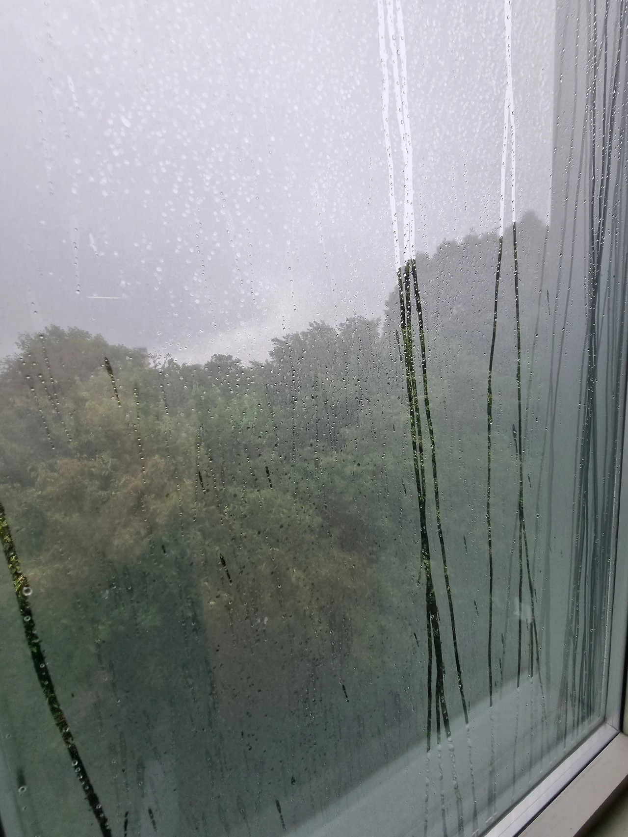 기숙사입소하는 날 비가 왔다. 창밖 풍경이 예쁘다.나무가 한가득