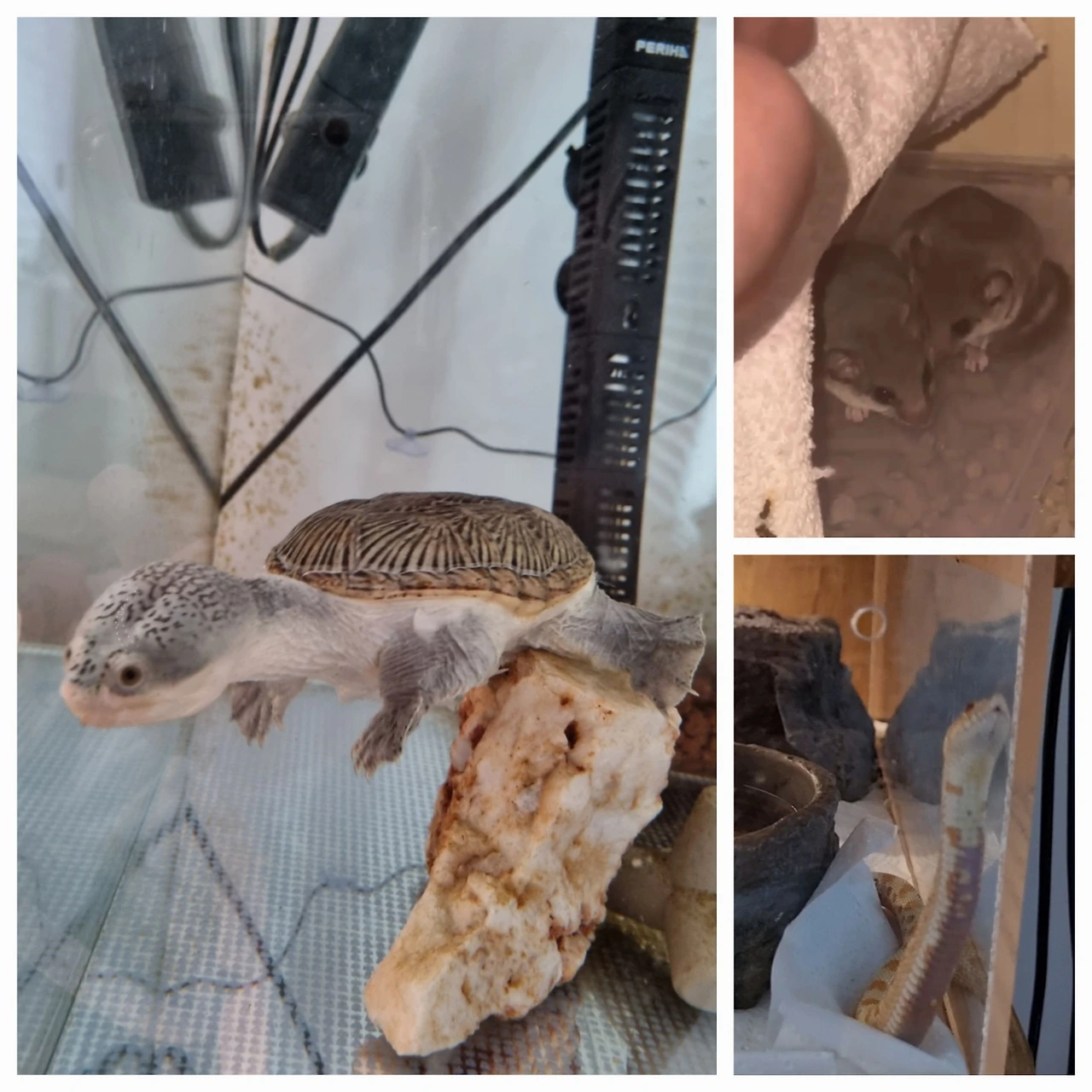 거북이 '대두' , 빠른 피그미다람쥐는 '흥민이' ,뱀이름은 모르겠다.도마뱀'돌멩이'사진은 없다. 현재 둘째랑 같이 사는 식구다.
