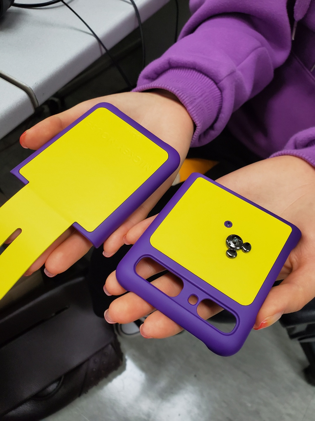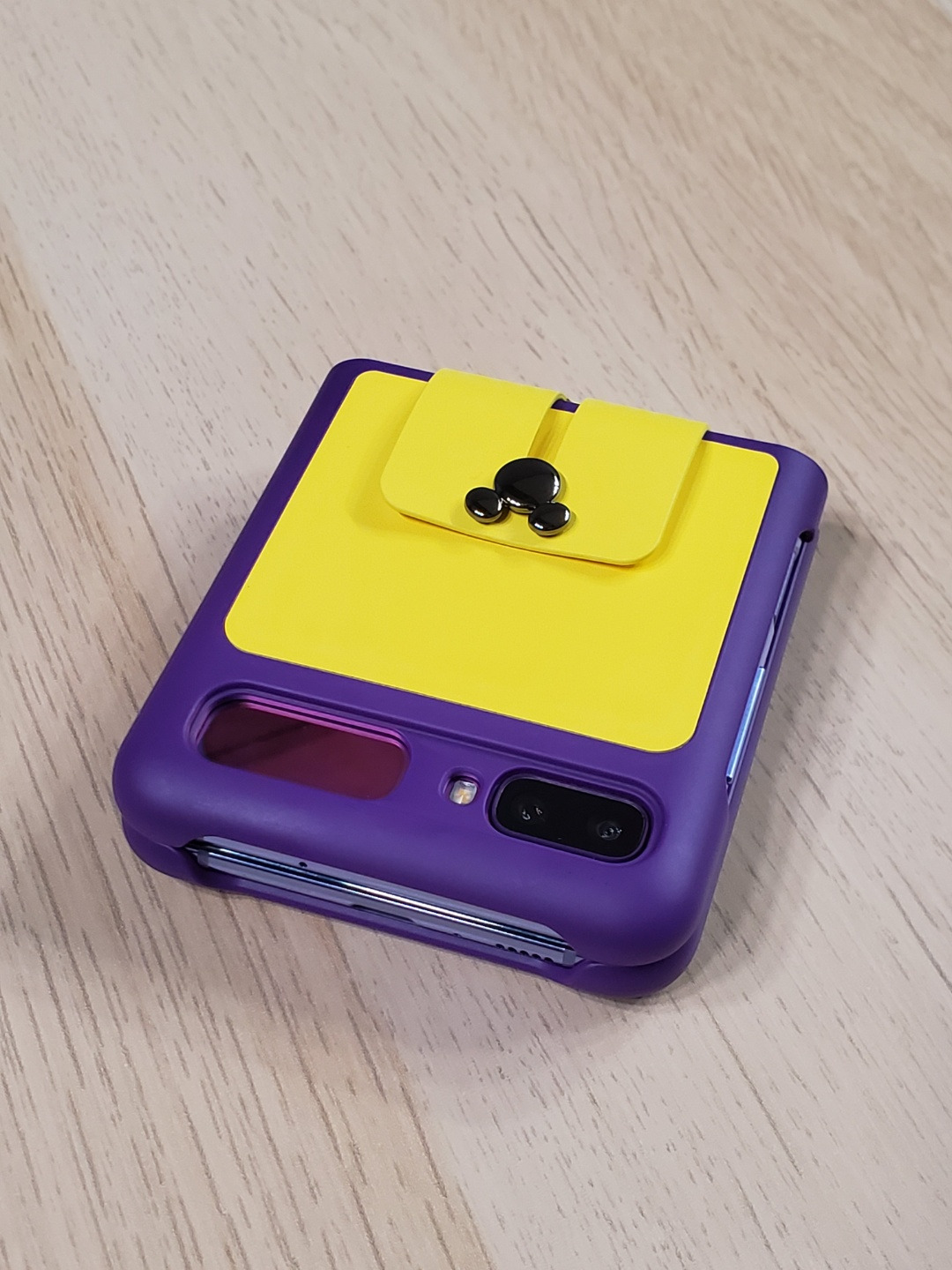 사실 접었을 때 Z플립의 두께(15.4~17.3mm)는 갤럭시폴드(15.7~17.1mm) 보다 비슷하거나 조금 더 두껍습니다. 케이스가 너무 두꺼우면 한 손에 쏙 들어오는 Z플립만의 장점을 헤칠 가능성이 있죠. 미키마우스 에디션은 딱딱하고 꽤 두껍습니다. 고정관념일지 몰라 조심스럽지만 아무래도 미키마우스 에디션을 구매한 사람들이라면 이런 튼튼한 요소보다는 귀여움을 선호할 거 같은데요. 그런 점에선 아쉬운 요소입니다.