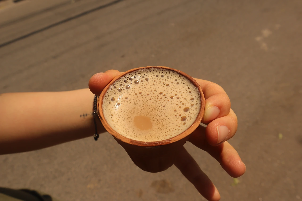 향긋한 홍차와 팔각을 비롯한 여러 향신료, 달달함이 조화로운 짜이를 한잔 한다. 신기한 점은 일회용 잔인데도 도자기로 만들어진 잔이라는 것이다. 노동자 임금이 상상을 초월할 정도로 낮은 이곳에선 종이컵처럼 저렴한 재료와 기계를 구비해 공장을 돌리는 것보다 사람이 흙으로 잔을 빚는 것이 더 경제적인가 보다.