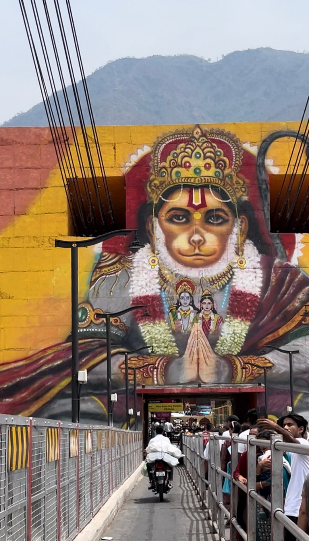 근처 오토바이전용 다리를 통해 어제 들렀던 락슈만줄라지역으로 이동한다. 문 앞에 크게 그려져 있는 인물은 힌두교의 대 서사시 [라마야나]에 등장하는 바라나(Varana)족 장군 하누만(Hanuman)이다.