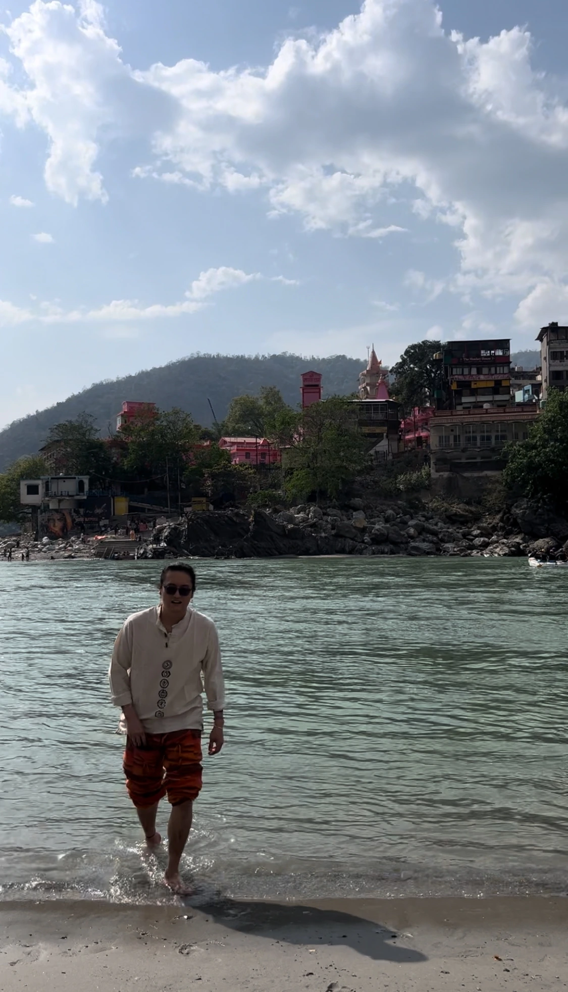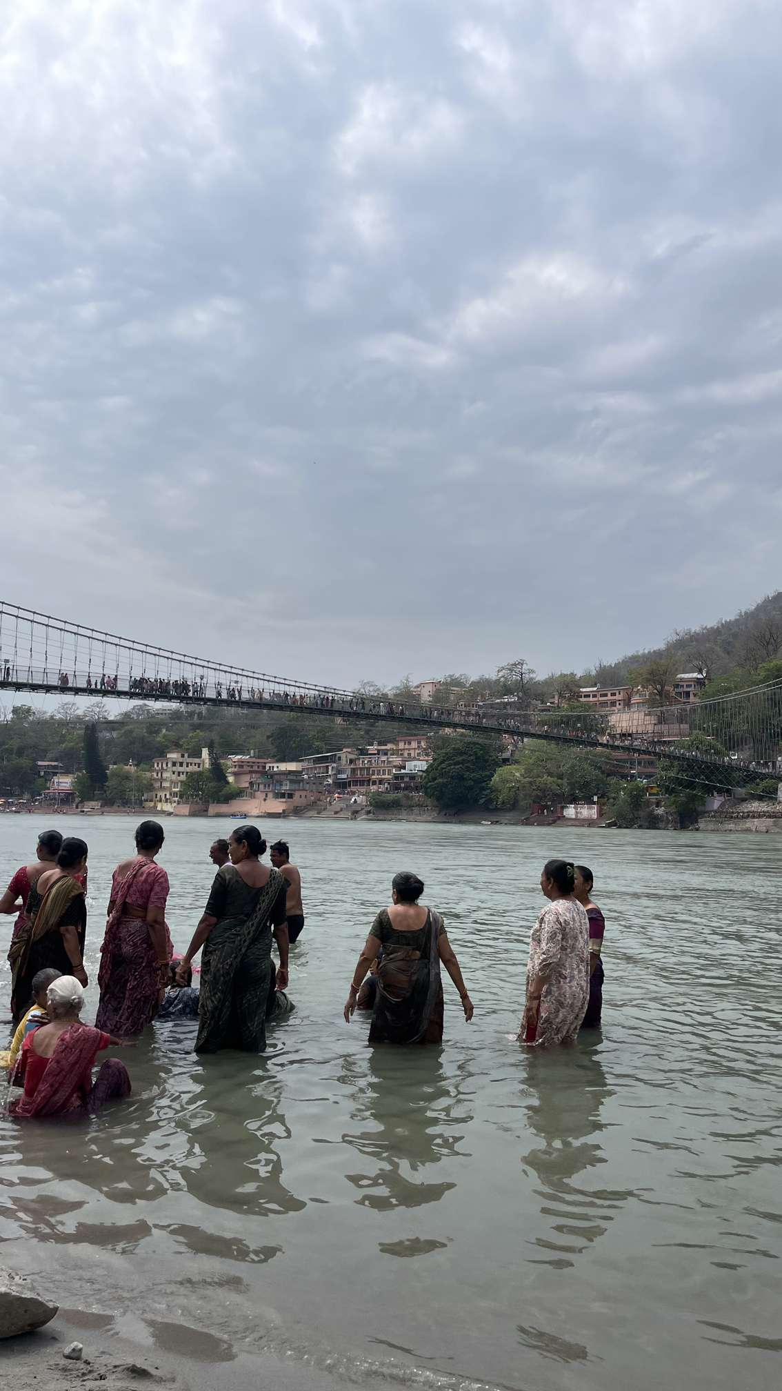 ”갠지스강에 몸을 담근다. “라고 말하면 오염된 구정물에 담가지는 몸을 떠올리지만 리시케시의 갠지스는 결이 조금 다르다. 이곳은 강줄기가 시작되는 지점이니만큼 수질이 매우 좋고 물이 차서 더운 낮시간이면 사람들이 쉬러 오는 피서지가 된다. 우리도 더운 몸을 식히러 몸을 담그고 왔다. 들어간 지 1분 만에 거센 물살에 선글라스가 떠내려갔다. 그래도 시원하게 수영했으니 됐어… 강가의 여신에게 변색렌즈 안경을 선물했다. 옆에선 열댓 명 남짓의 아주머니들이 소녀처럼 까르르 놀고 있다.