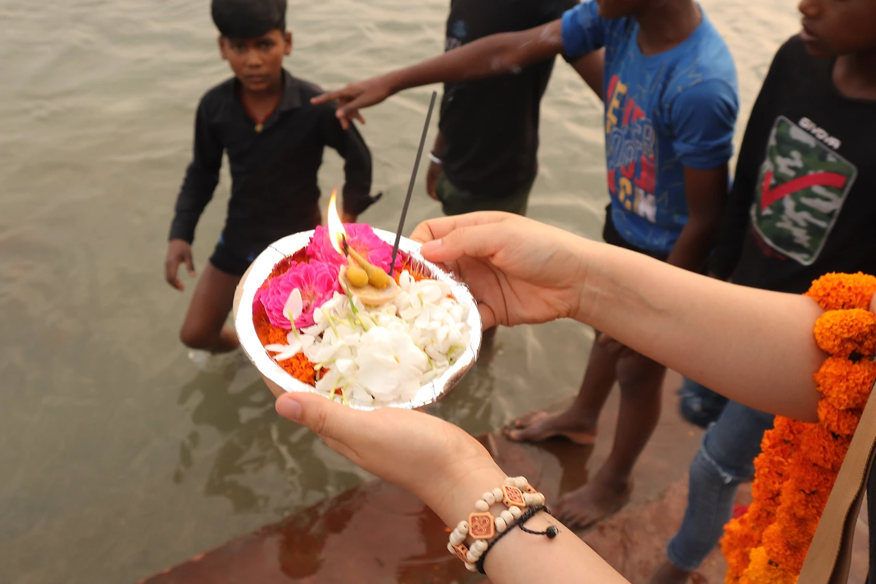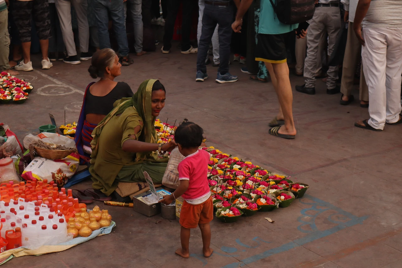6시 30분 노래(만트라, 주문)와 함께 행사가 시작되면 사람들은 일제히 무언가에 불을 붙이기 시작한다. 집 앞 슈퍼 학생에게 들은 이름으로 ‘디야(Diya)’라는 종교 장치, 여러 종류의 꽃과 기(Ghee, 정제버터)에 적신 휴지, 인센스가 하나 꽂혀있는 작은 보트다. 이걸 판매하는 아이는 100루피라 덤탱이를 씌우려다가 30루피를 부르는 매정한 남자에게 차마 더 우기지는 못하겠는지 물건을 넘겼다. 값을 지불하려는데 갑자기 50루피라 거짓말을 하더라. 조금 다그쳤다. 물건을 비싸게 팔 순 있어도 거짓말은 하면 안 되지. 아이에게 20루피(=320원)을 곧이곧대로 받아냈다.