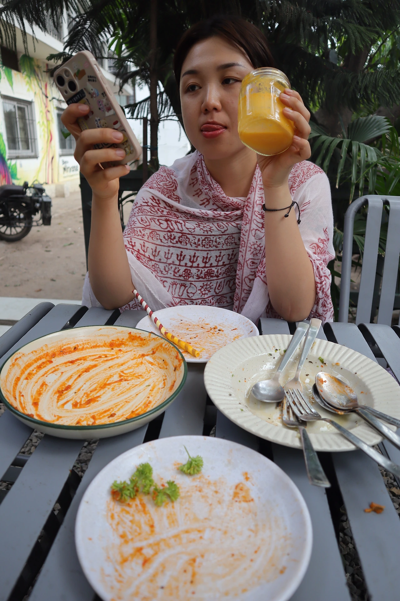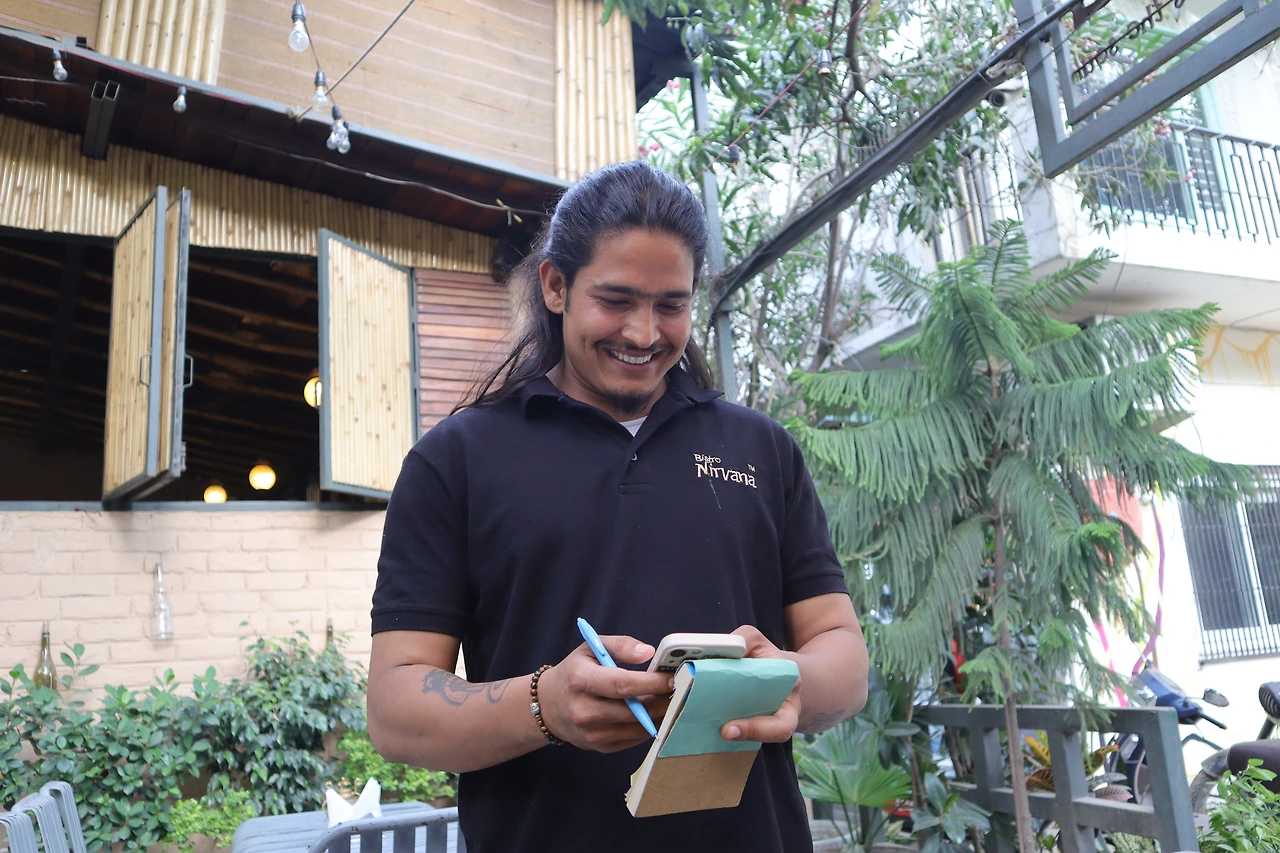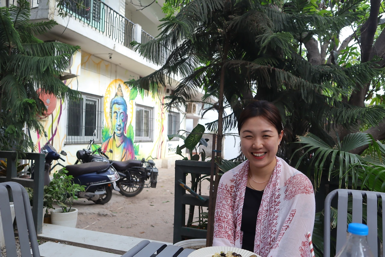 집 바로 앞에 있는 Bistro Nirvana (극락식당)에서 일하는 Amar. 근육쟁이 수줍은 남자. 이야기를 나누고는 밥을 아주 기가 막히게 먹었다. 그릇에 남아있는 숟(손)가락 자국이 멋진 식사를 증명한다. 역시 이거지.