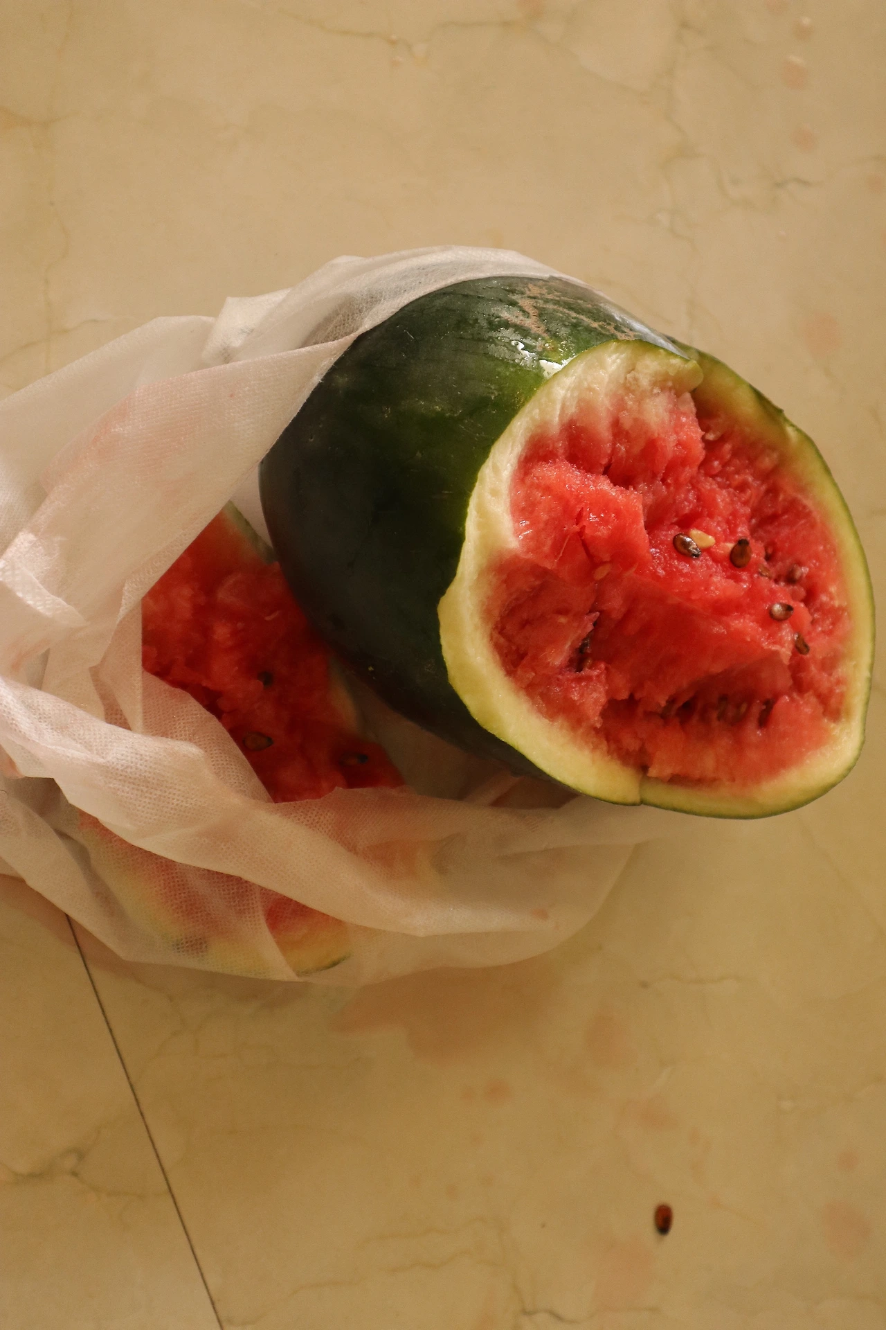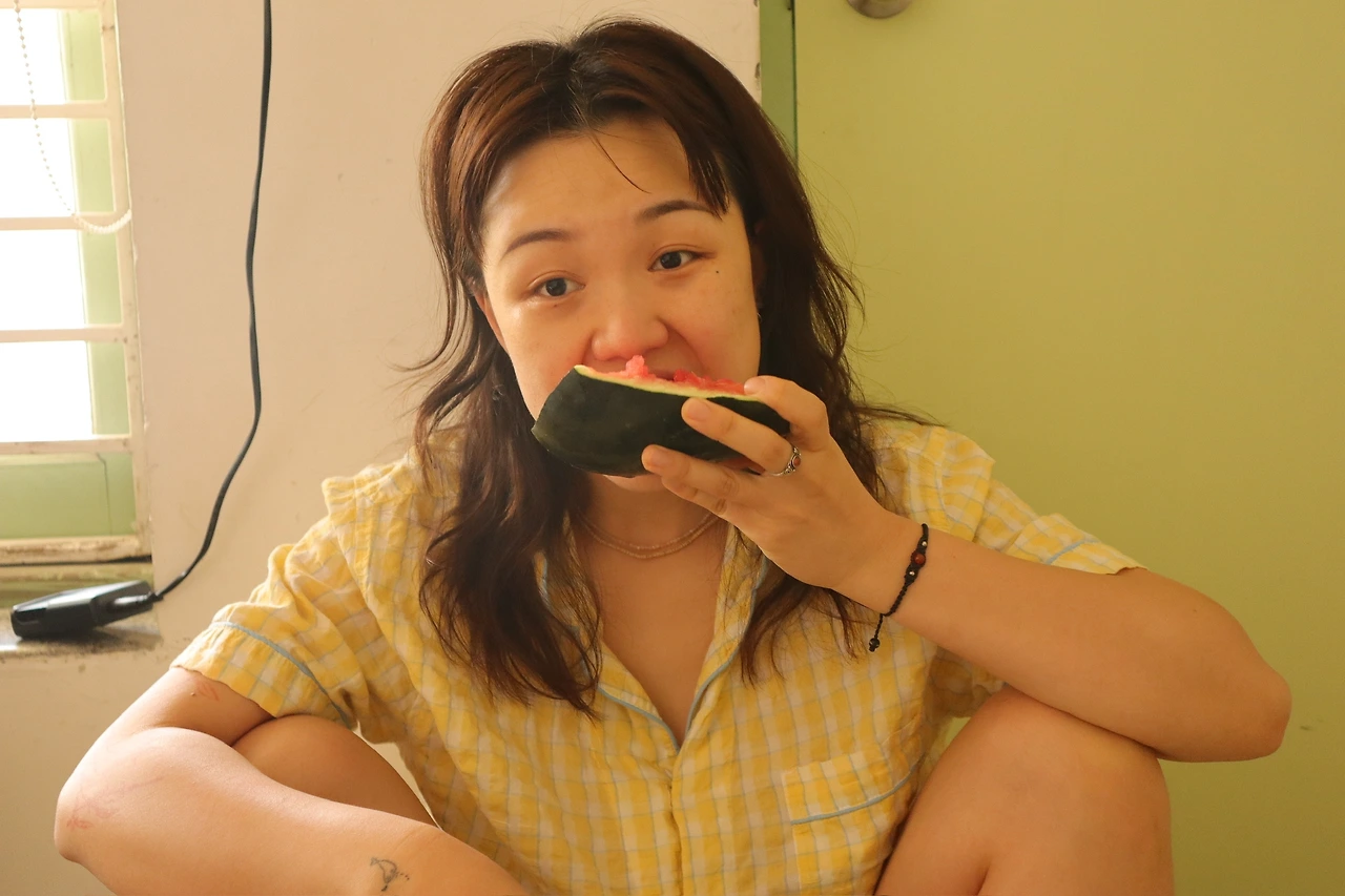 비몽사몽, 혹여나 어제 먹은 더위가 남아있을까 야채가게에서 사 온 수박으로 아침 주린배를 다독였다. 마음에 드는 과도를 사지 못한 탓에 주먹으로 부숴먹었다. 껍질이 질겨 팡! 터지지 않고 우지끈 찢어졌다. 여기 식물은 껍질이 다 질기다.