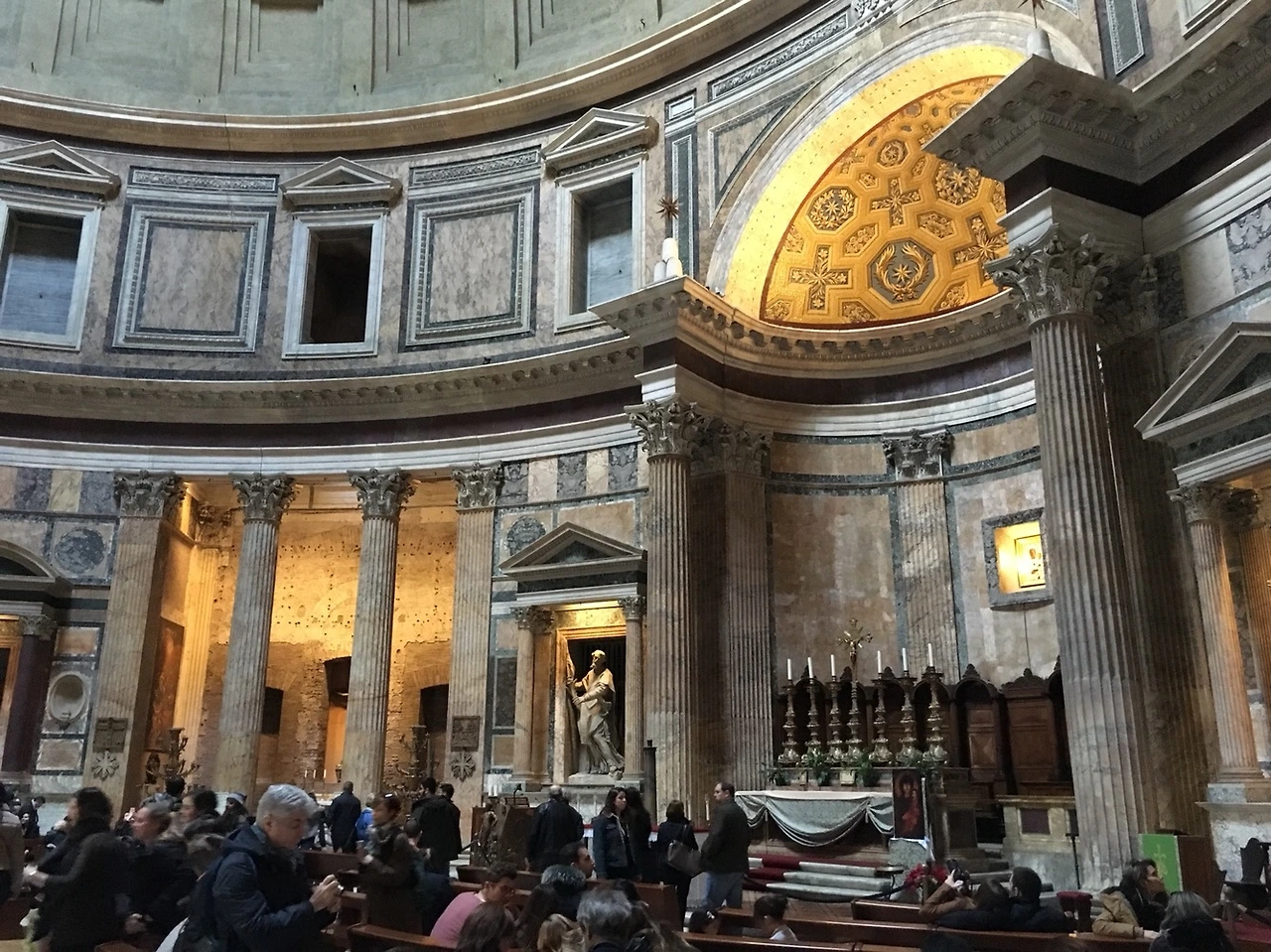 게임이나 영화의 소재로도 많이 등장하는 '판테온'이라는 말은 라틴어로 모든 신들을 위한 신전이라는 의미의 판테이온(Πάνθειον)에서 유래된 것이다. 종교가 없는 나도 그 웅장함에 매료되어 침묵하게 되었는데 신전 정중앙 천장으로 들어오던 빛줄기는 없던 신앙심마저 들게 만들었다.