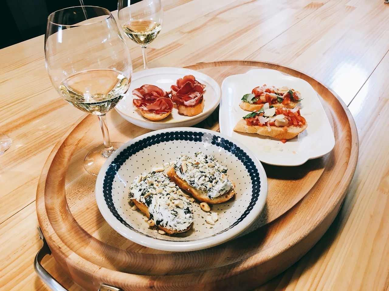 *브루스게타(Bruschetta) - 빵조각(보통 치아바타)위에 여러가지 재료를 올려 먹는 전채요리
