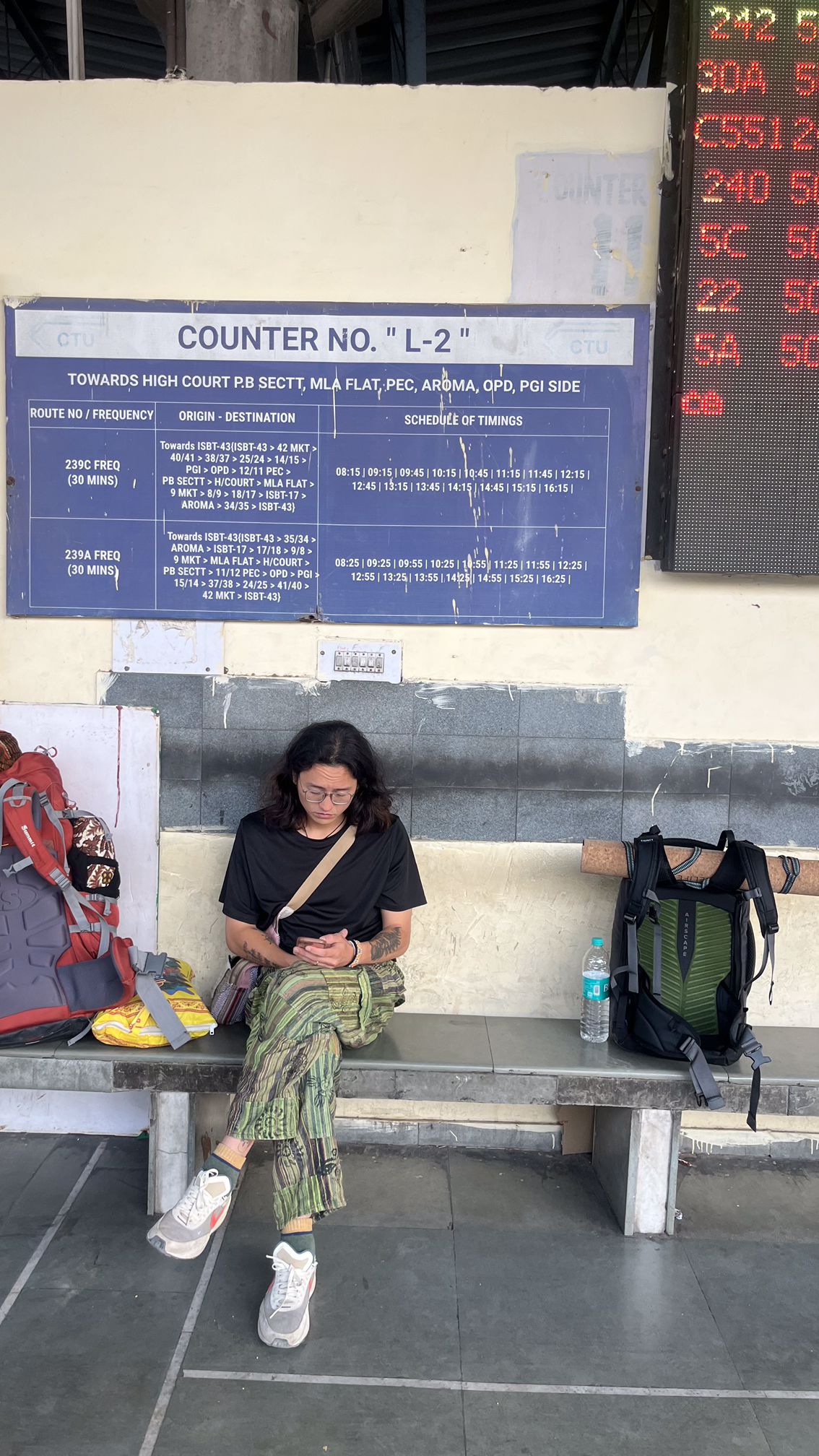 40분 정도 일찍 정류장에 도착했다. 선선한 날씨, 피곤한 발을 쉬며 버스를 기다렸다. 알고 보니 뒤에 보이는 버스가 찬디가르-델리행 버스였는데 어찌 된 영문인지 기사아저씨는 계속 찬디가르는 안 간다고 대답했다. 다음 버스겠거니 하고 기다리다 다급하게 걸려오는 전화를 받고 탑승했다. 인도에서는 예약한 전화번호로 확인전화를 돌리고 승객을 기다려주니 버스를 놓칠 걱정은 크게 하지 않아도 된다.