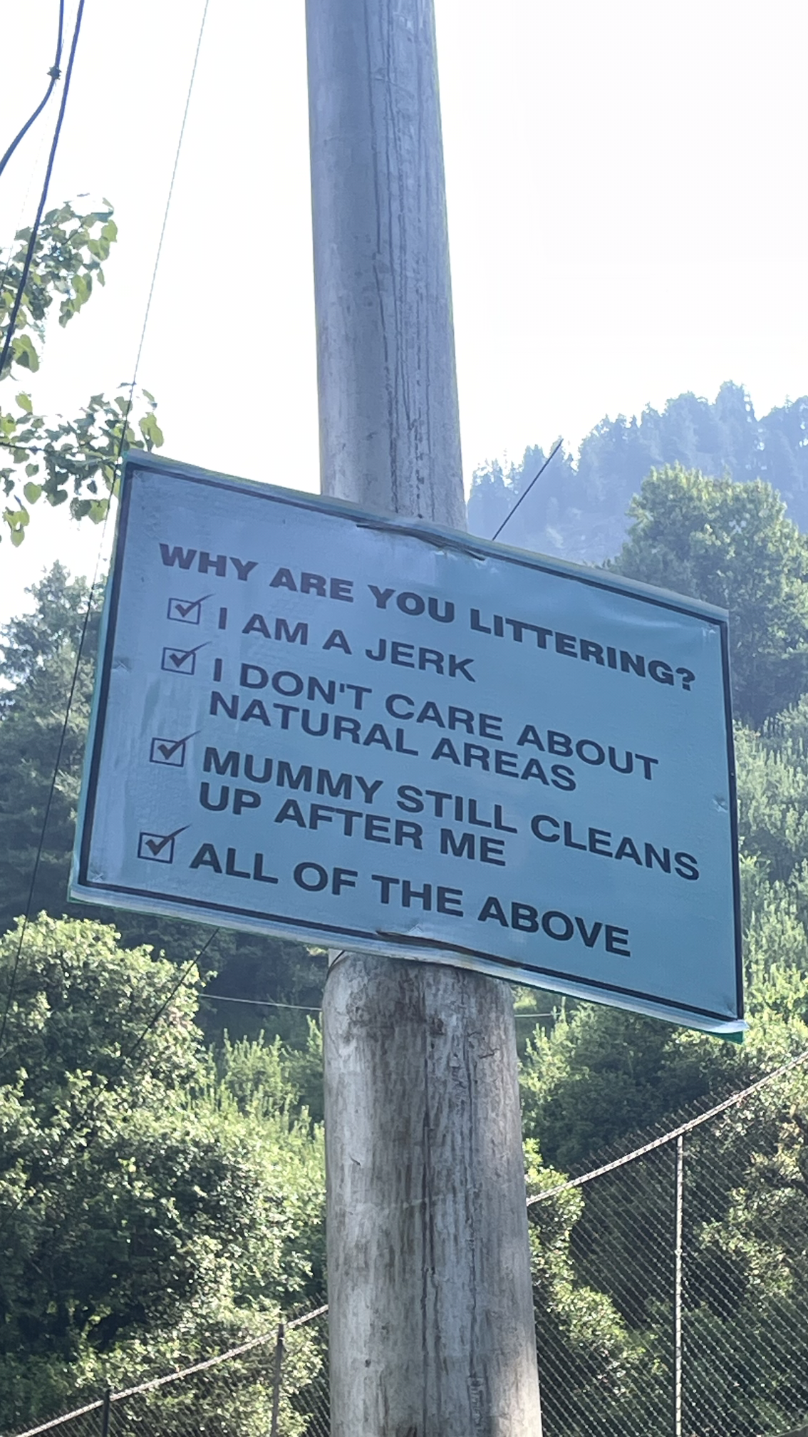 바쉬스트의 숙소에서 요가원으로 (조기니 폭포 방향으로) 가다 보면 나오는 표지판이다. 대충 쓰레기를 버리지 말라는 의미인데 바로 그 옆 아름다운 히말라야의 물줄기를 바라보면 눈살을 찌푸리게 된다. 3m는 족히 되어 보이는 펜스가 가로막고 있지만 포기를 모르는 그들은 힘차게 쓰레기를 던진다.