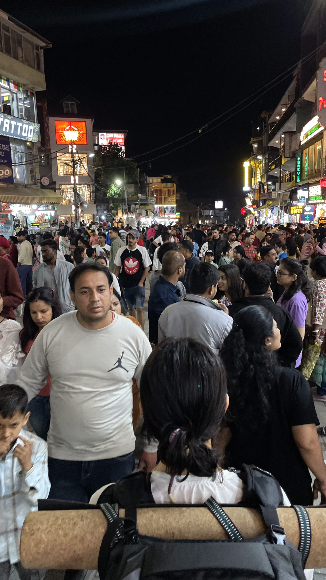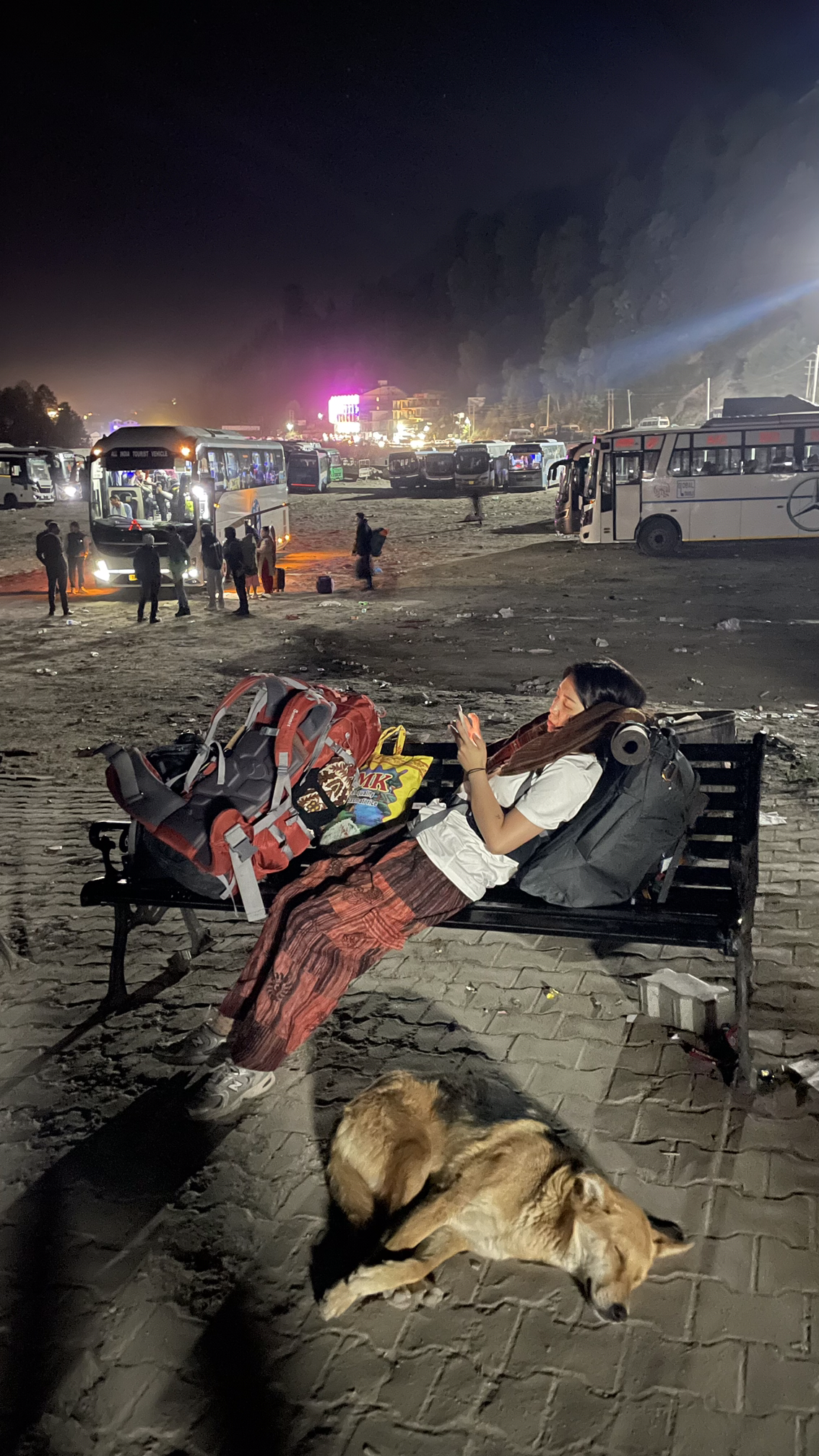 뉴 마날리에 한가운데 위치한 버스정류장은 북쪽의 더 높은 곳으로 가는 버스를 타는 곳이다. 지난주 로땅패스에 갈 때 들렸던 곳으로 관광버스의 느낌이 강한 반면 오늘 우리가 버스를 타는 곳은 저쪽 더 아래 큰 길가에 있는 작은 정류소다. 도보 30분 거리, 뉴마날리는 역시나 사람이 엄청나게 많다. 어찌저찌 길을 뚫고 차도를 지나 정류장에 도착했다.
