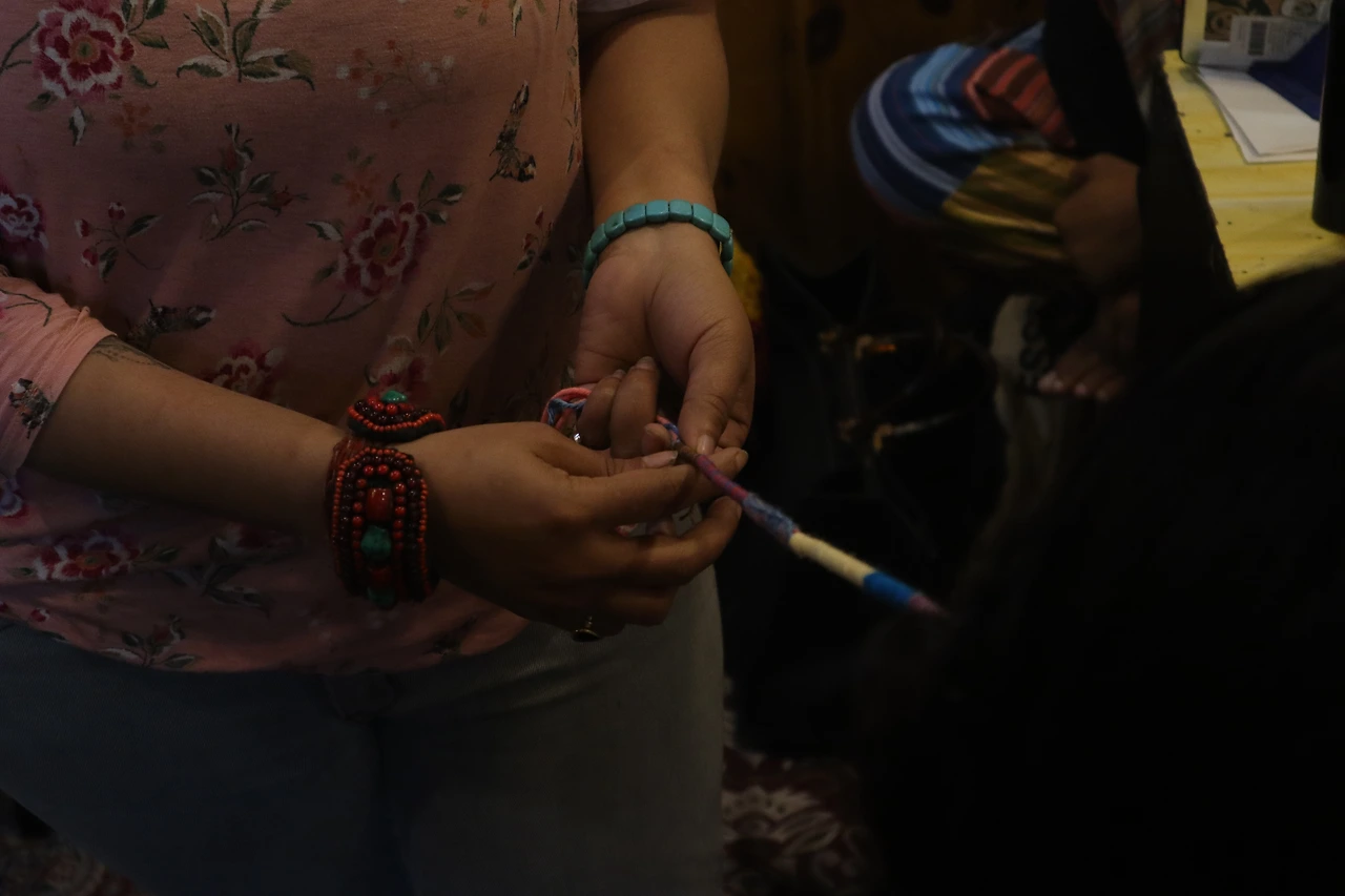 채은이가 그토록 찾던 헤어웹숍을 발견했다. 직접 색을 고른 실을 머리와 함께 땋는 헤어 액세서리, 작업과정을 지켜보던 채은이는 시장에서 실을 구매해 내 머리에도 하나 만들어줬다. 여러 작업물을 걸어둔 길가의 상점에선 작가의 작업과정을 지켜볼 수 있다.