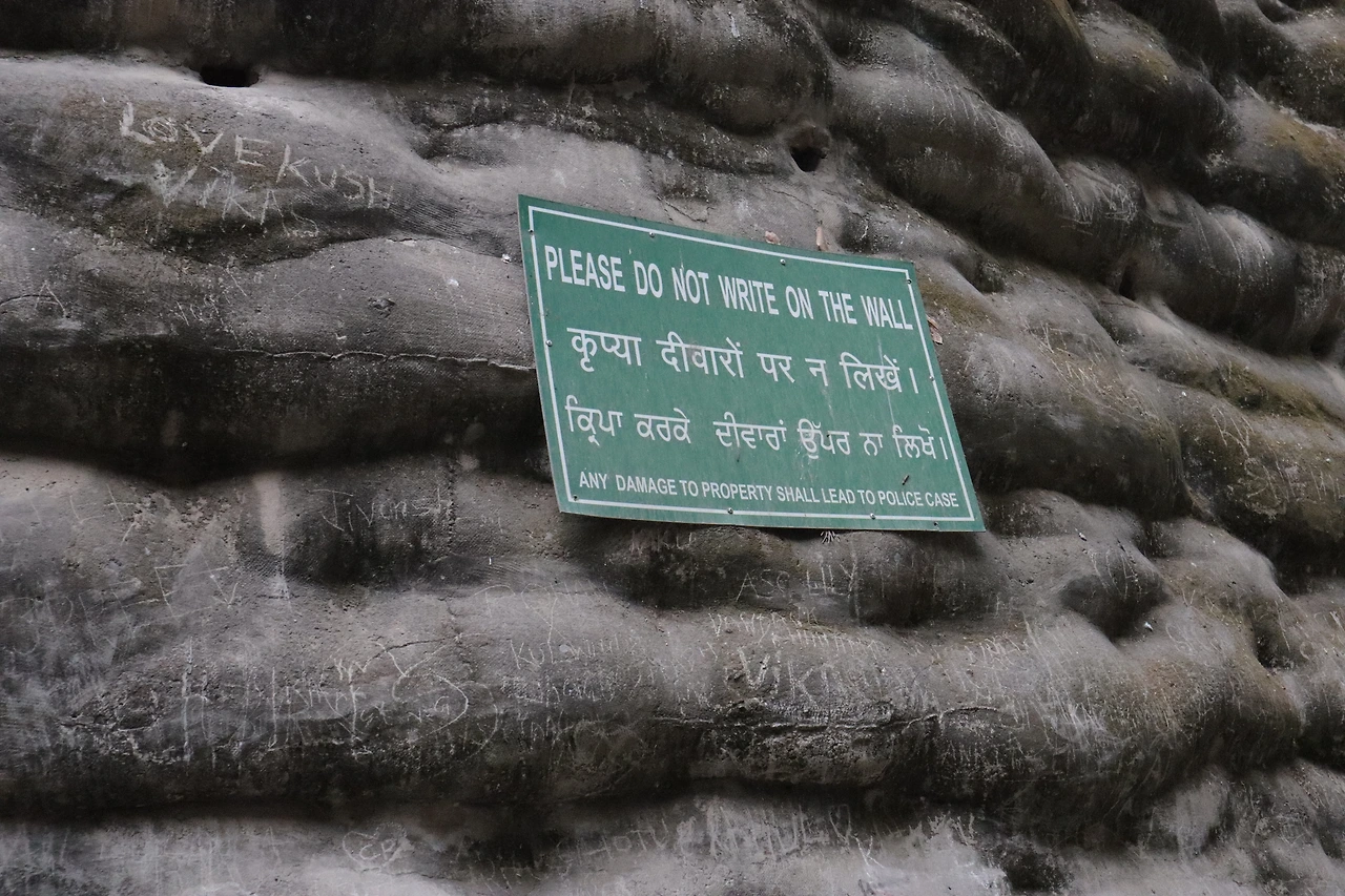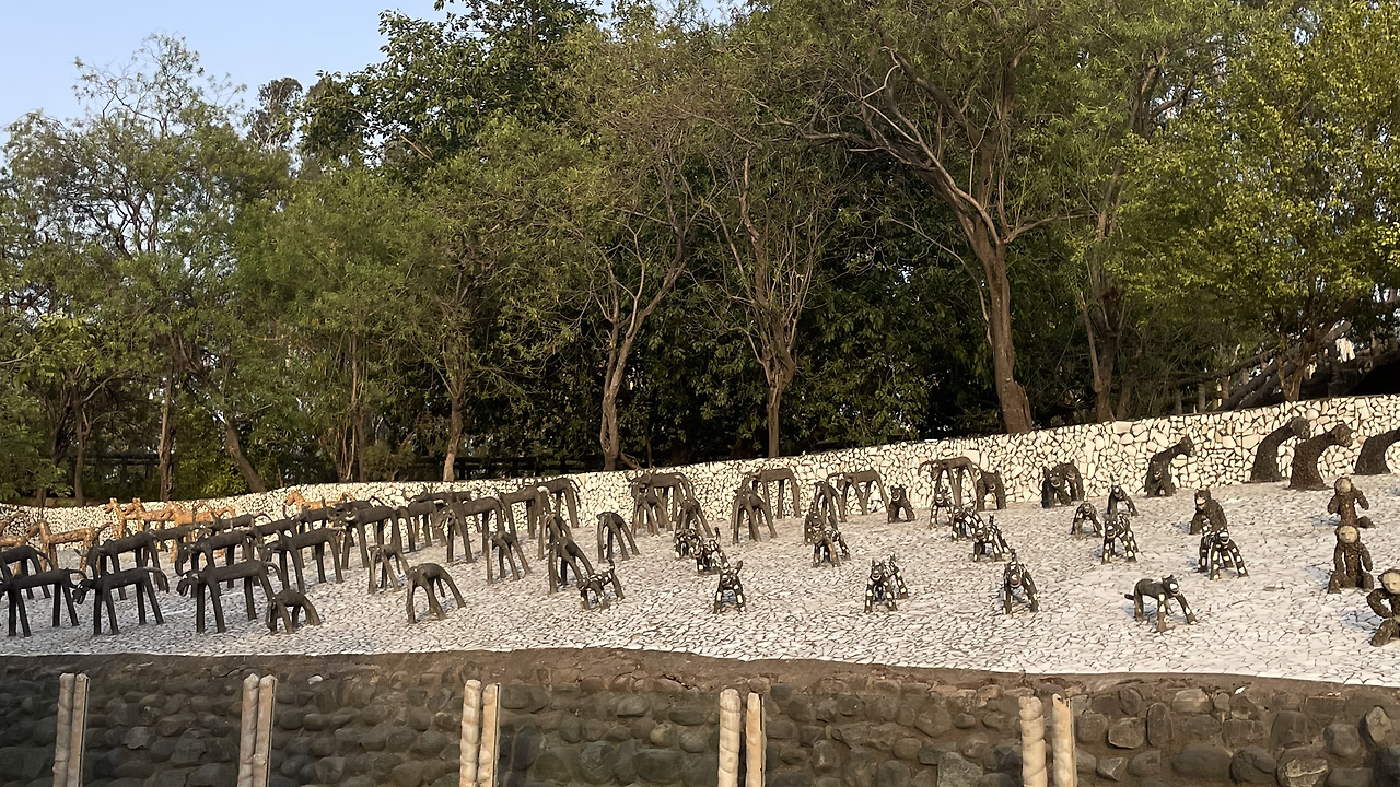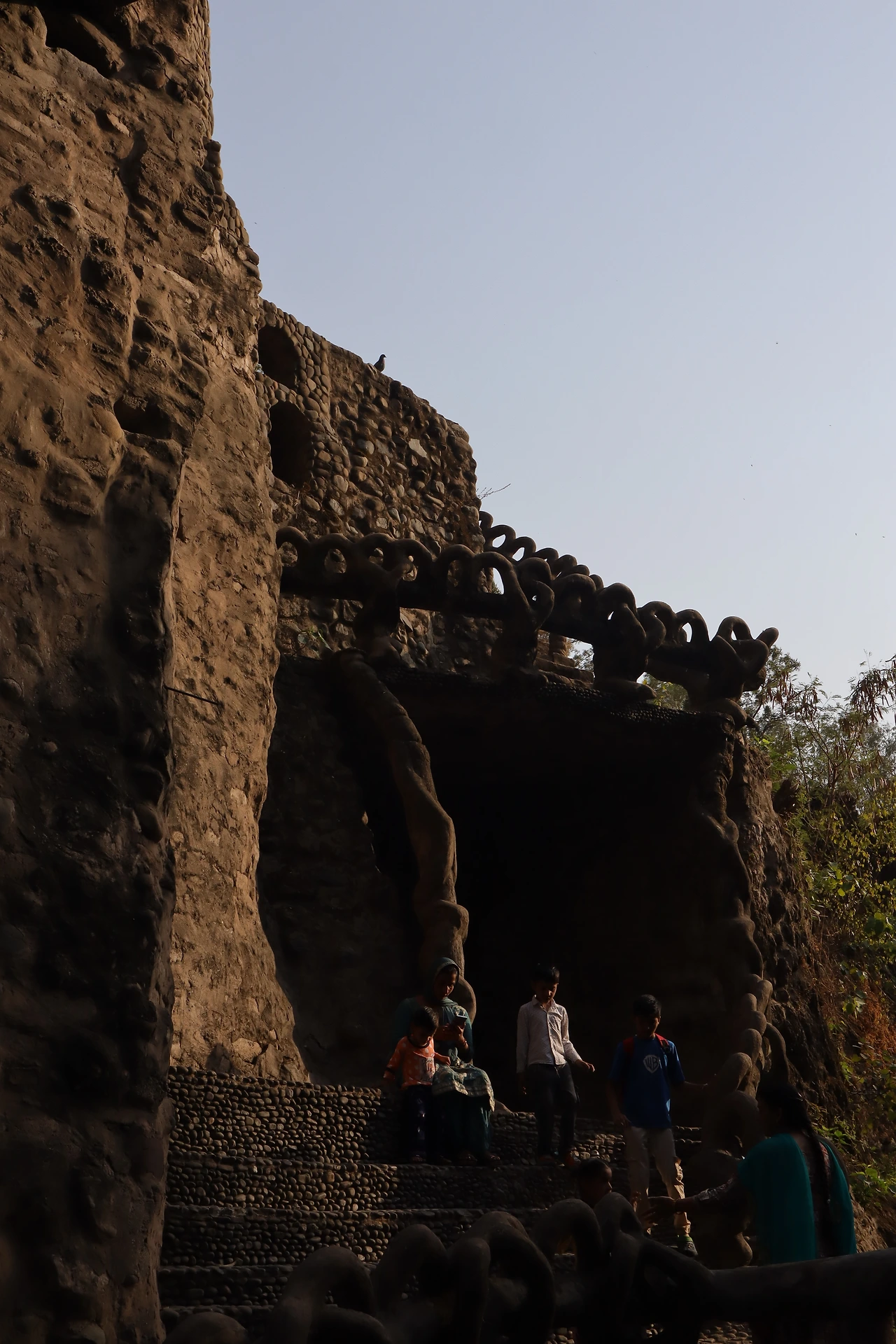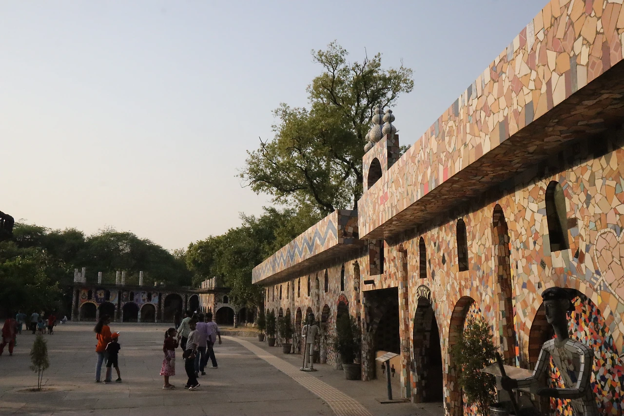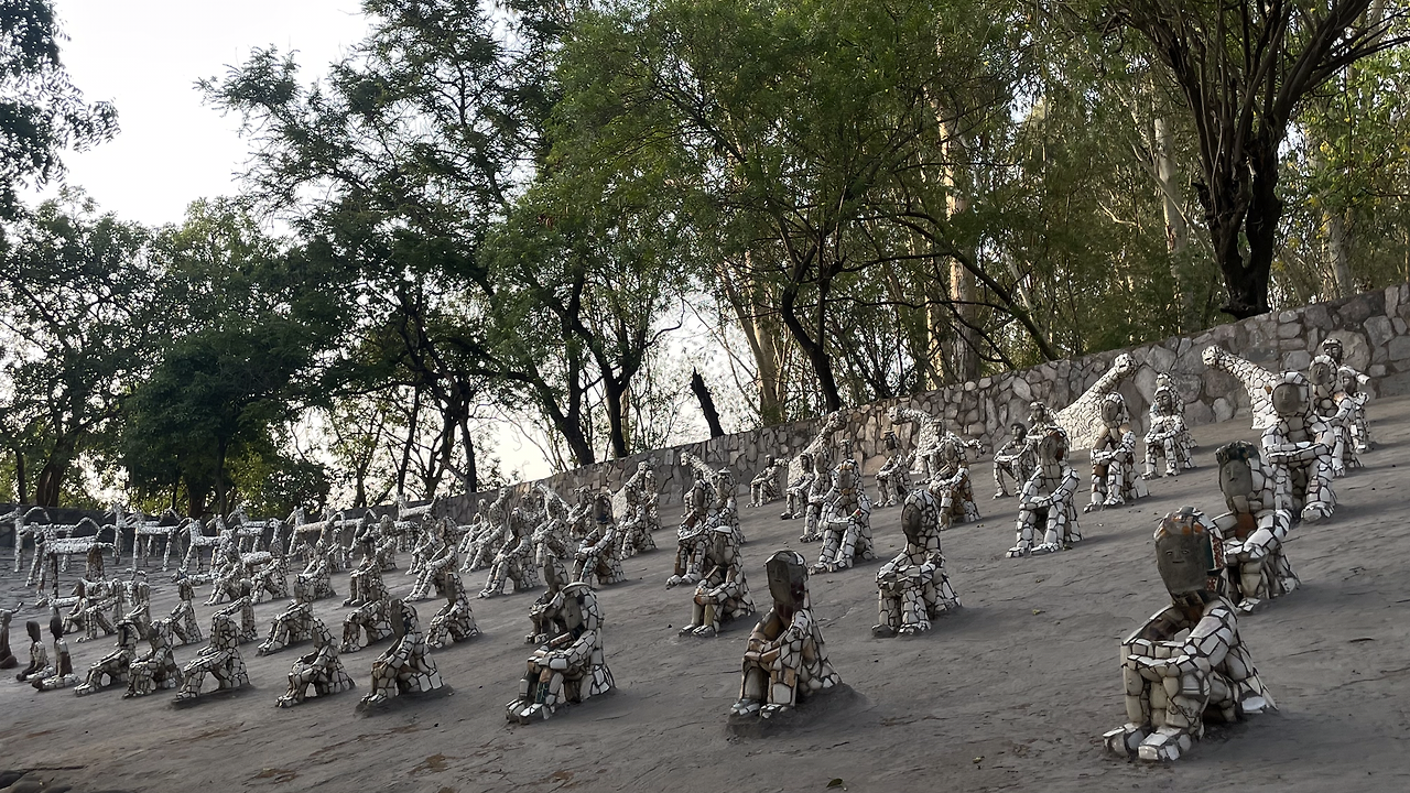 1구역 중앙청사 바로 옆 재미난 공원, 락 가든. 매표소의 코딱지 만한 구멍을 통해 1인당 30루피 (480원)을 내고 입구로 들어서자마자 이곳 작품들의 아이덴티티를 함축시킨 벽이 나타난다. 콘센트 부속품 수..천개?로 마감한 벽.