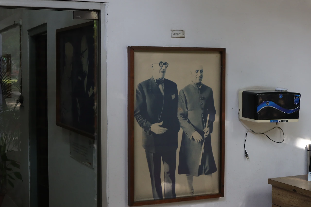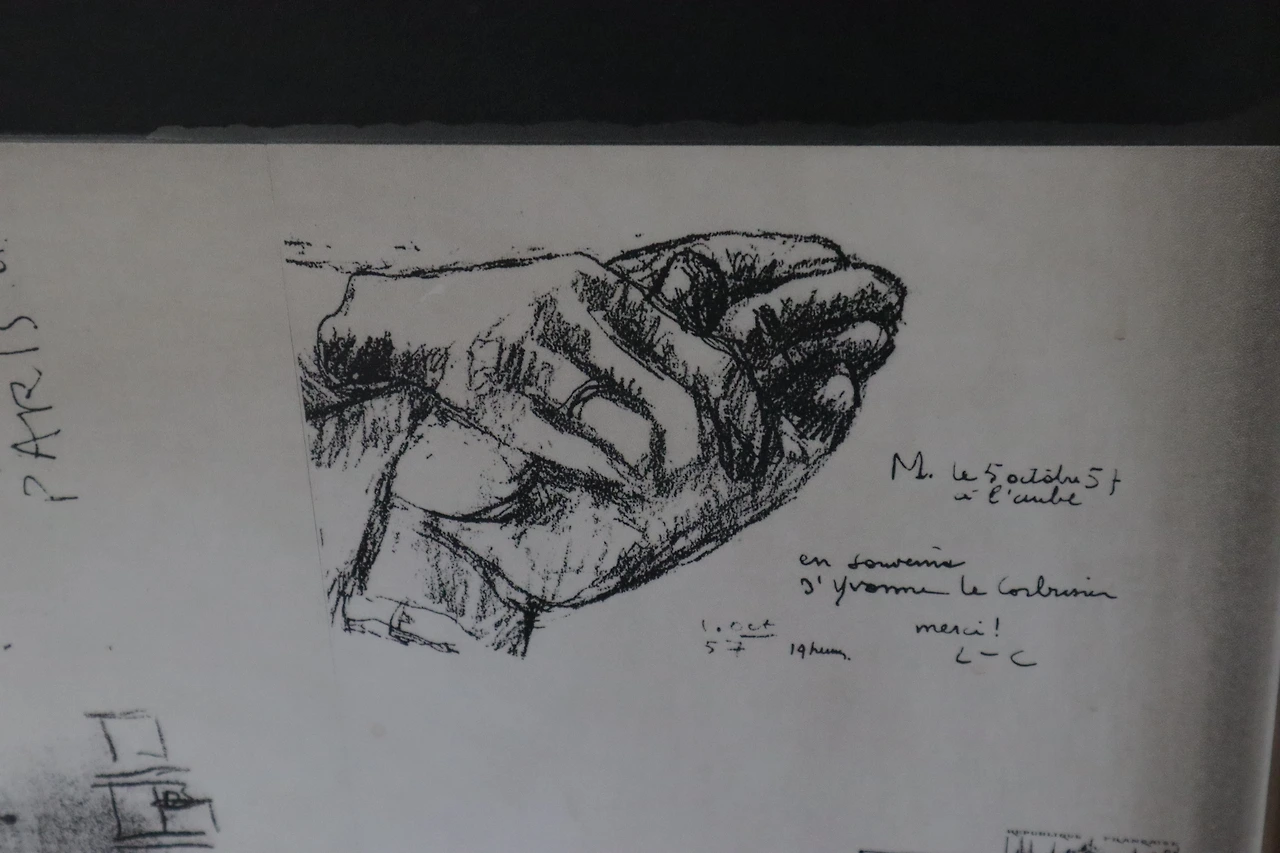 박물관 내부에는 르 꼬르뷔지에가 이곳을 설계할 때 그렸던 청사진들과 기타 초안들, 당시의 사진들이 전시되어 있다. 두 번째 사진은 아내와 맞잡은 손. 태생이 화가인 그의 그림작품들도 여러 점 보관되어 있다.