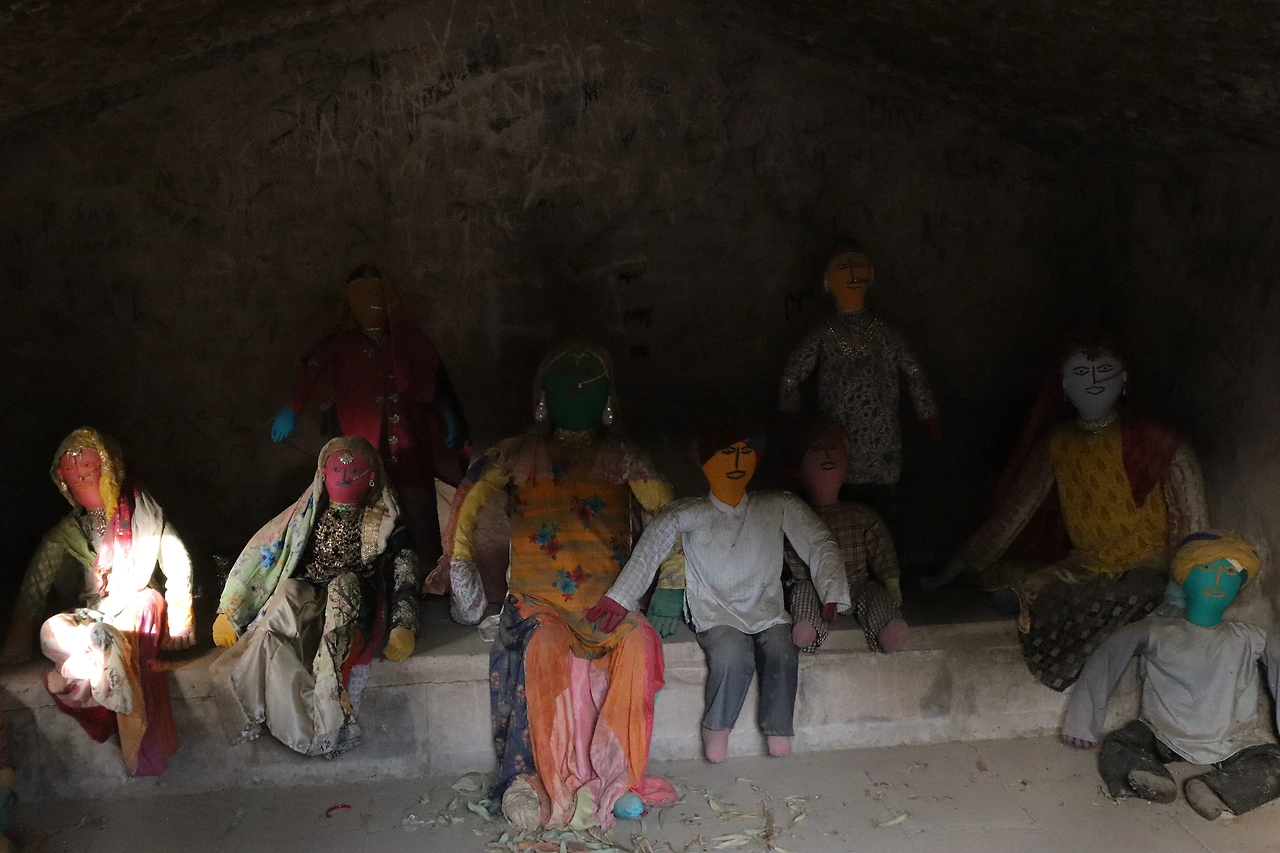 갑자기 나타나는 동굴 속 인형들. 작가의 어린 시절을 회상하며 만들었다고 한다. 위의 작은 집들과 꼬불한 골목들 역시 어린 날 마을의 모습을 형상화한 것이라고.