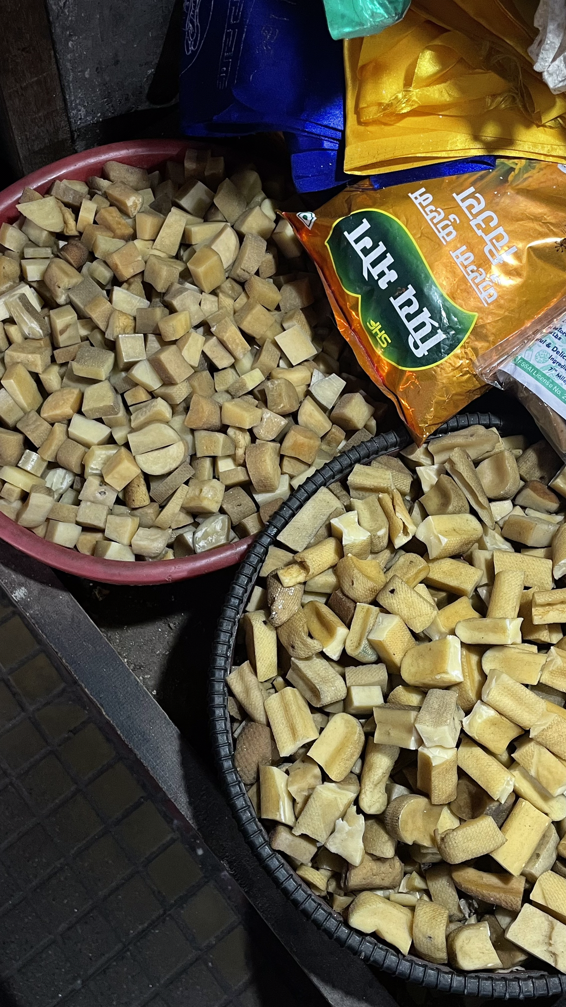 다른 지역에서 보기 드문 종류의 식재료가 많다. 무엇인가를 ‘건조’시킨 음식이 있고, 육수를 내는 작은 물고기와 새우, 독특한 색의 구근채소들도 보인다. 날이 습한데 어떻게 건조시켰나 의문인데 겨울에 작업한 것들인가 보다.