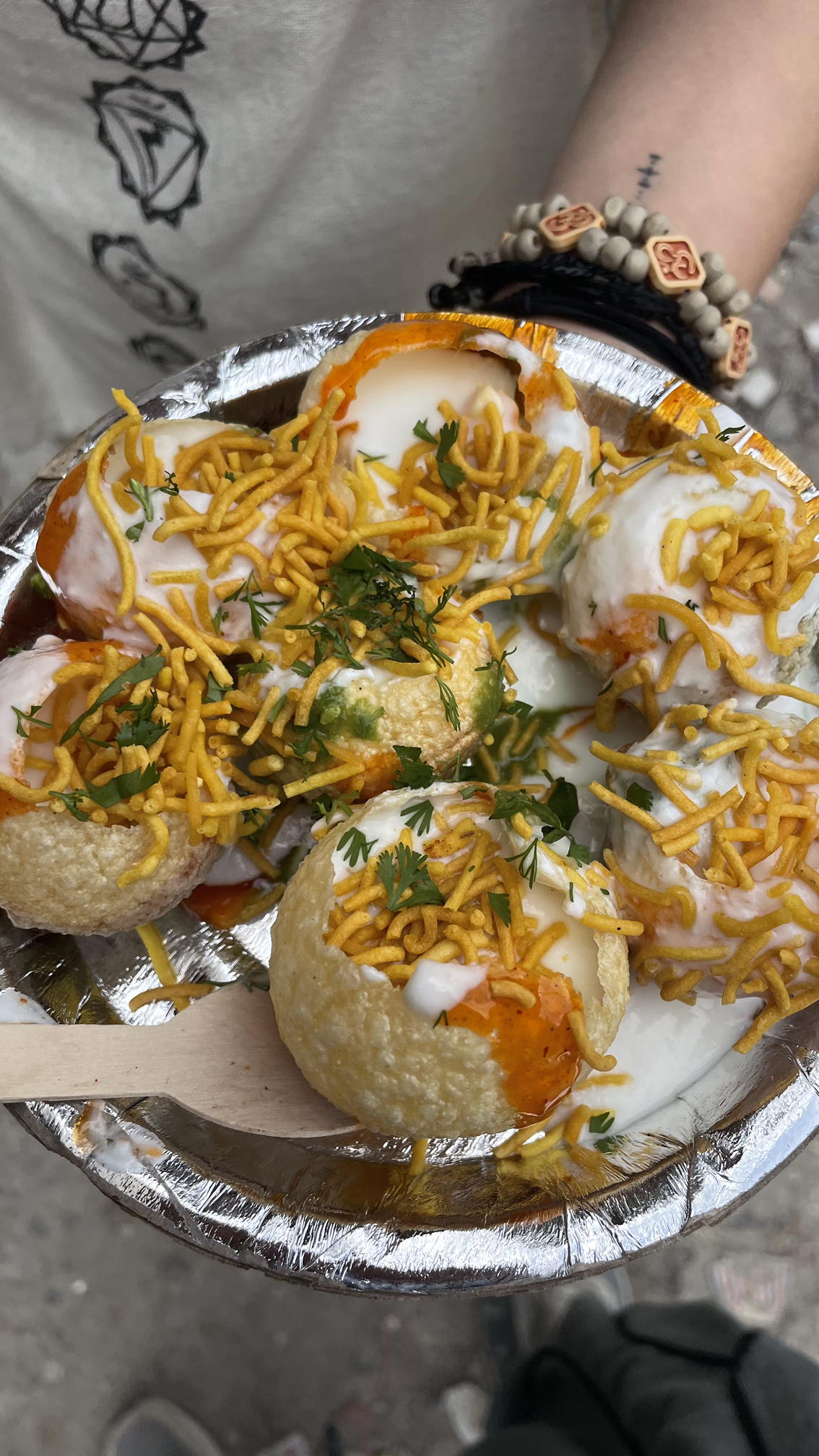 인도의 대표 거리음식 뿌리(Puri) 가족 중 요거트를 이용한 다히뿌리다. 달고 시고 맵고 짜고 바삭하다가 눅눅하고 고수향과 알 수 없는 마살라까지. 뭔가 인도사람들을 음식으로 표현한 맛이다.