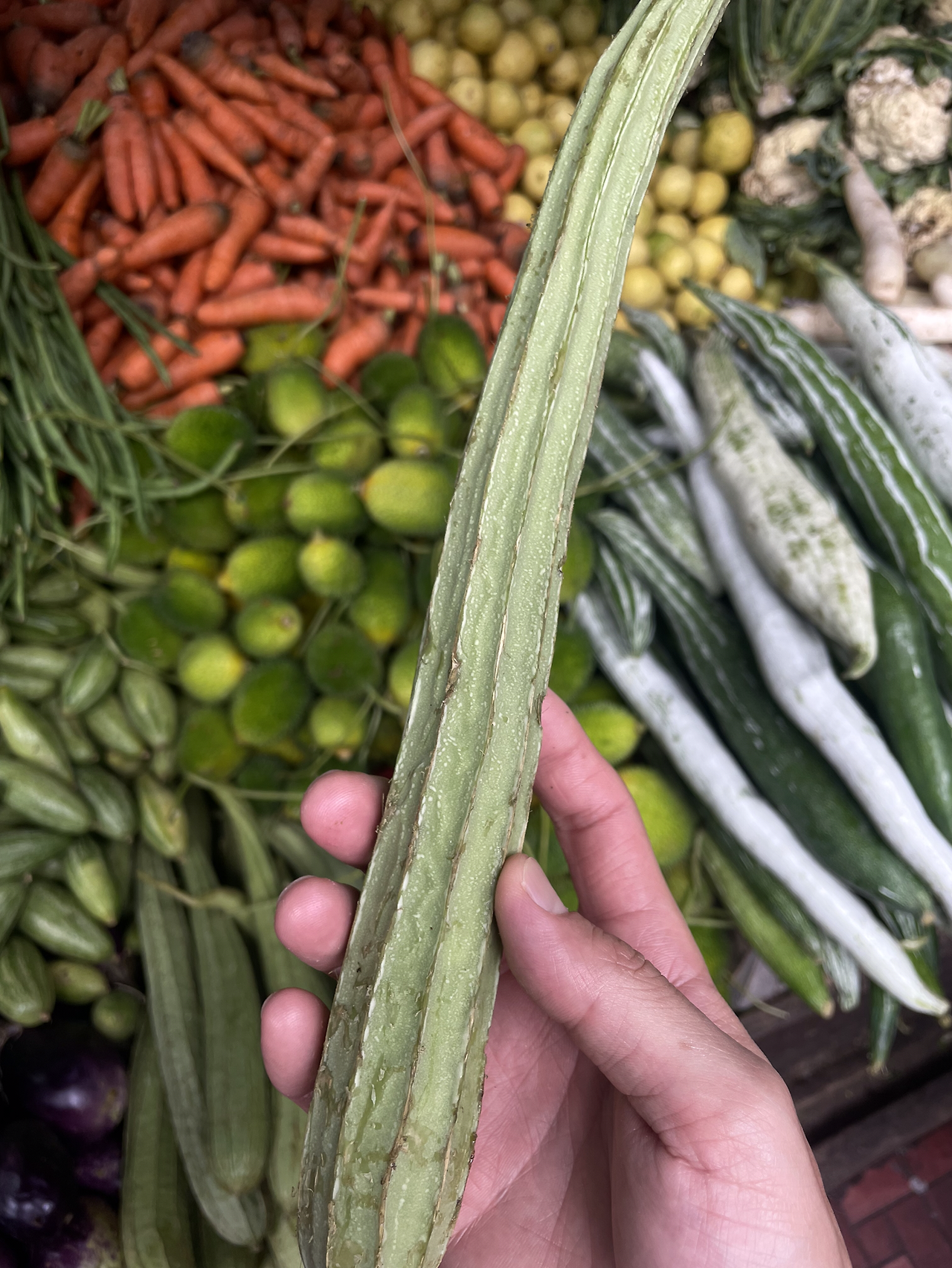 한국과 비슷한 식재료와 조리법이 보인다. 오른쪽의 작은 오이 같은 것은 포톨(Potol)이라는 오이와 호박의 중간쯤 되는 채소다. 삽지탈리에 볶은 포톨이 들어가는데 맛은 호박처럼 달짝지근하지만 오독오독 씹히는 씨앗이 잔뜩 있는 것이 특징.