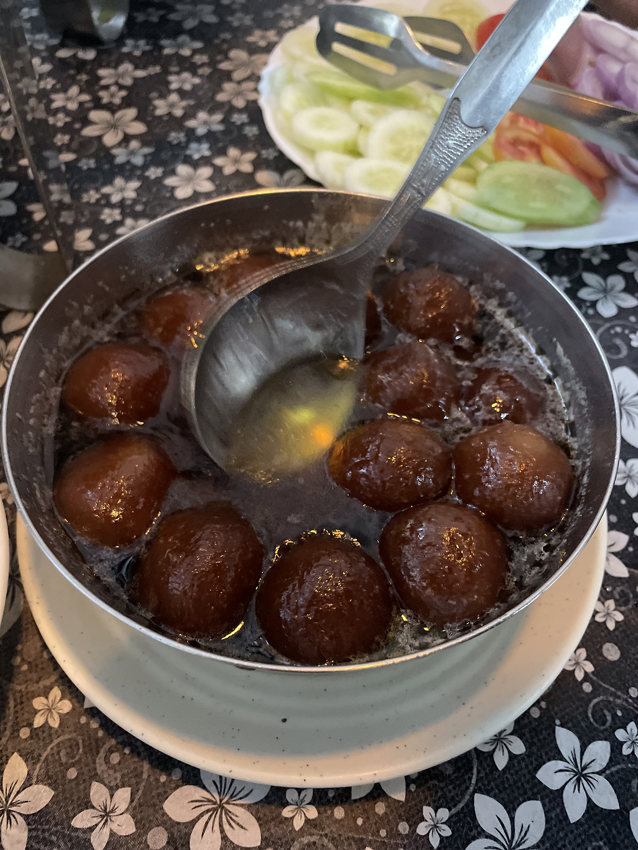 페르시아와 지중해에서 개발된 역사 깊은 디저트 굴랍자문이다. 그 지역(파키스탄, 튀르키예, 인도북부)의 여타 간식들처럼 지옥에서나 맛볼 수 있는 달콤함이 특징이다. 이슬람 문화권의 간식이 엄청나게 달콤한 이유는 그들의 천연 디저트인 대추야자가 엄청나게 달아서 단맛의 기준이 높다는 의견이 있다.