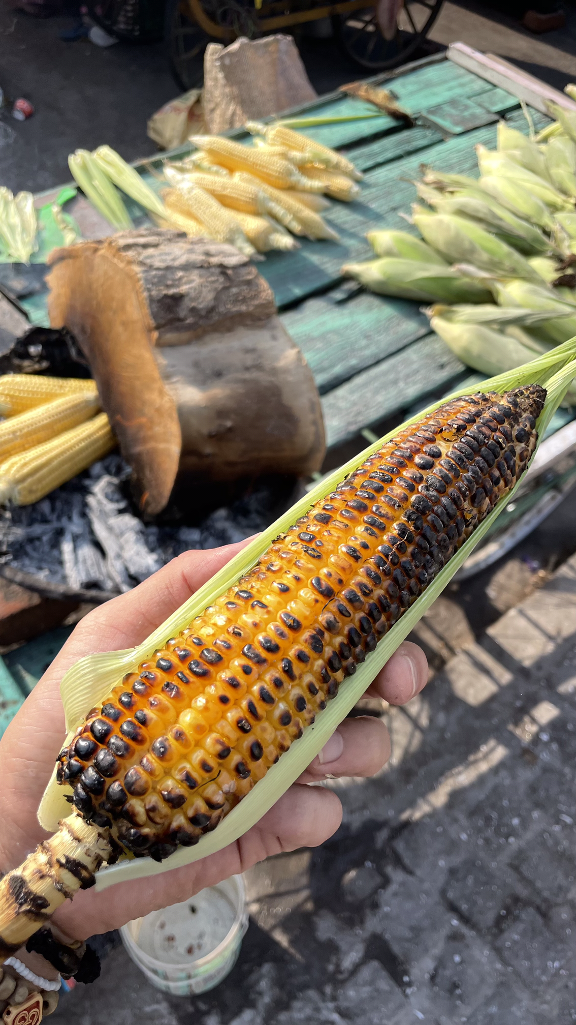 사람이 모이는 곳이면 항상 보이는 옥수수 굽는 아주머니들. 나무장작+숯불에 직화로 구운 옥수수에 소금과 마살라, 레몬을 발라서 먹는다. 팝콘용 옥수수처럼 단단하고 별다른 맛이 안 나지만 은근히 중독성이 있다.
