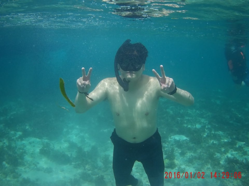 당시엔 수중에서 촬영할만한 장비가 없어 투어 가이드들에게 돈을 지불하고 촬영을 맡겼는데 파일이 날아갔는지 아쉽게도 수중에서 찍은 건 저 한 장이 전부다. 사실 사진이 더 있었더라도 실제만큼 아름답지 않아 아쉬워했었을 것이다. 탐스러운 꼭지쓰가 부끄럽지만 달리 방법이 없다.