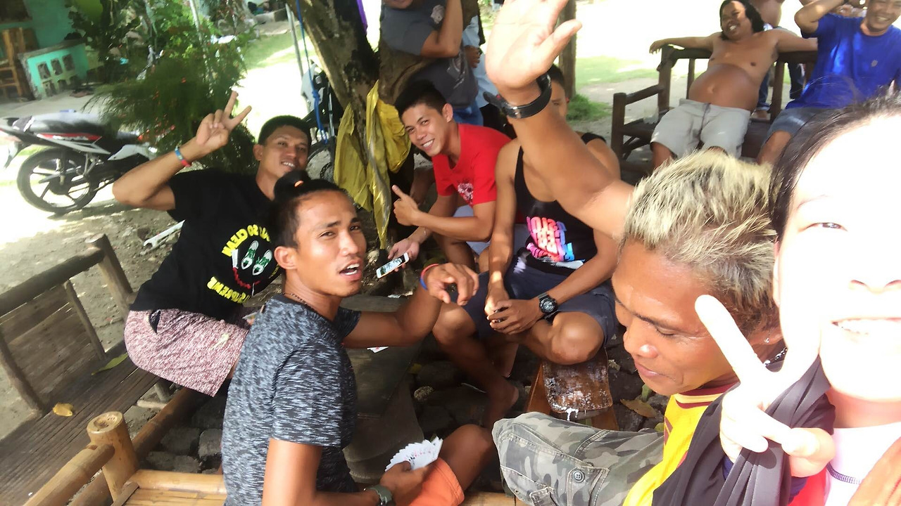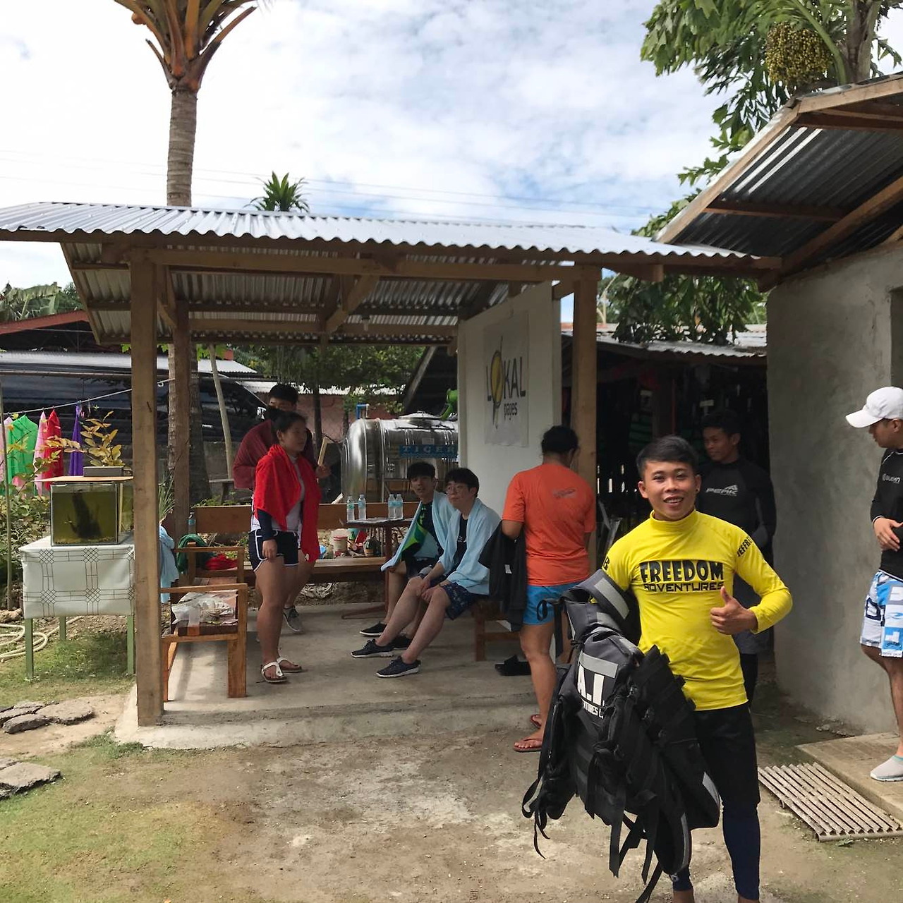 두 군데에서 스노클링을 하고 가와산(Kawasan) 근처에 있는 베이스캠프로 이동했다. 가이드일을 하는 동네 아저씨들이 모여 무슨 재미난 이야기를 하시는지 왁자지껄 동네를 신명 나게 만들고 있었다. 긴팔 옷과 워터슈즈를 착용한 뒤 재치 넘치는 아주머니의 안전교육을 듣고 산으로 떠날 준비를 했다.