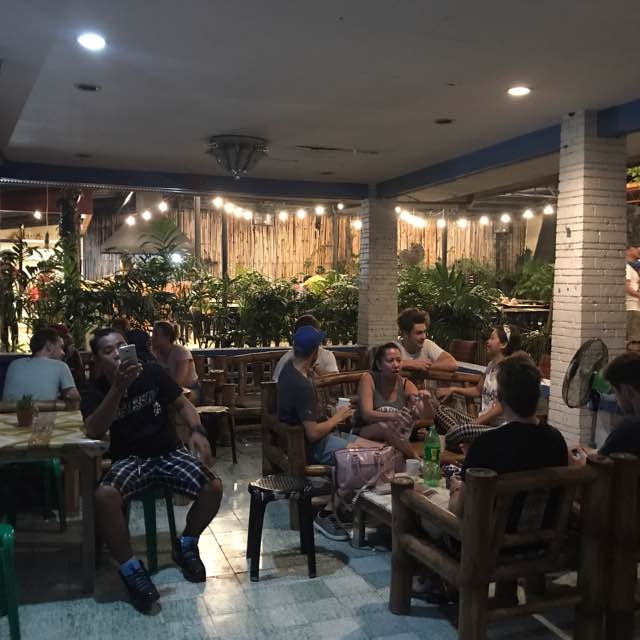 보통 게스트하우스는 레스토랑이랑 같이 운영하는데 여기는 바비큐 가게를 같이 운영하고 있었다. 사람들 따라 줄을 서 삼겹살, 생선 등등 골라 직화 바비큐를 부탁하고 자리에 앉아 술판을 벌이기 시작했다. 그러자 호스트가 다가와 "밖에서 사 온 술 마시려면 코르크 차지 500페소 해야 해"라고 이야기한다. 흠...... 뭐 어쩔 수 없지... 500페소를 건네니 대신 재미난 걸 빌려주겠다며 3리터짜리 칵테일 타워와 음료 몇 개를 건네주었다. 이 정도면 이득인데? 역시 정이 넘치는 호스텔이구나!