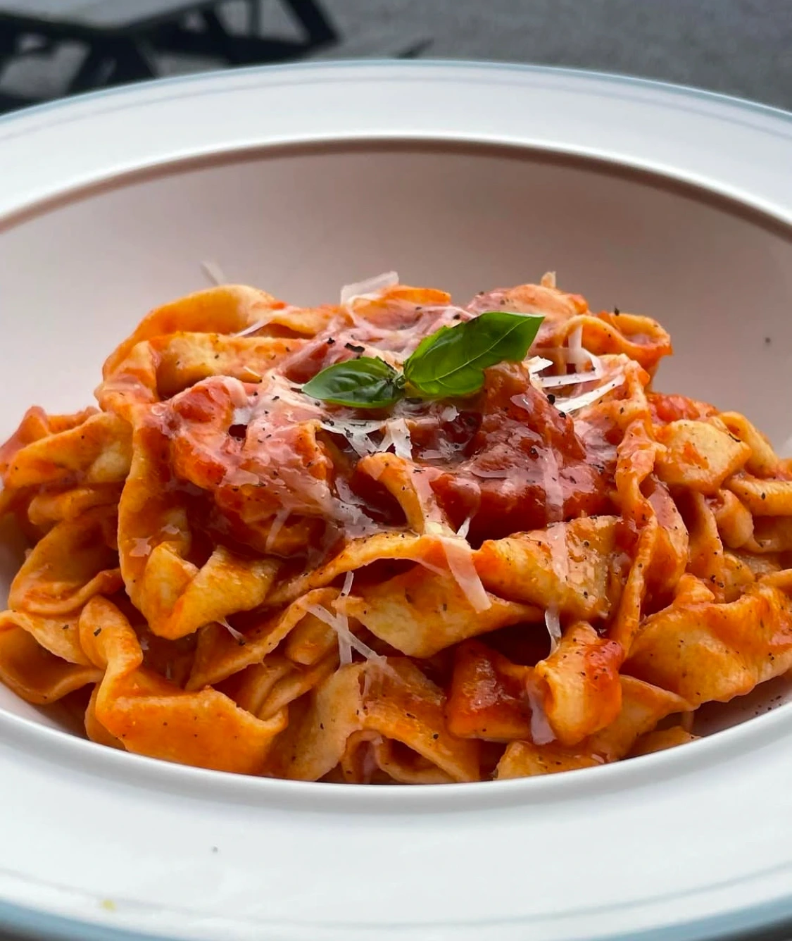 이 토마토소스 레시피는 당근이 많이 들어가 단맛과 식감이 좋습니다. 저는 직접 반죽한 파파르델레(Pappardelle)와 뒤뜰의 바질을 이용해 간단한 집 파스타를 만들었는데요. 토마토소스를 이용한 다양한 음식도 차차 소개하겠습니다.
