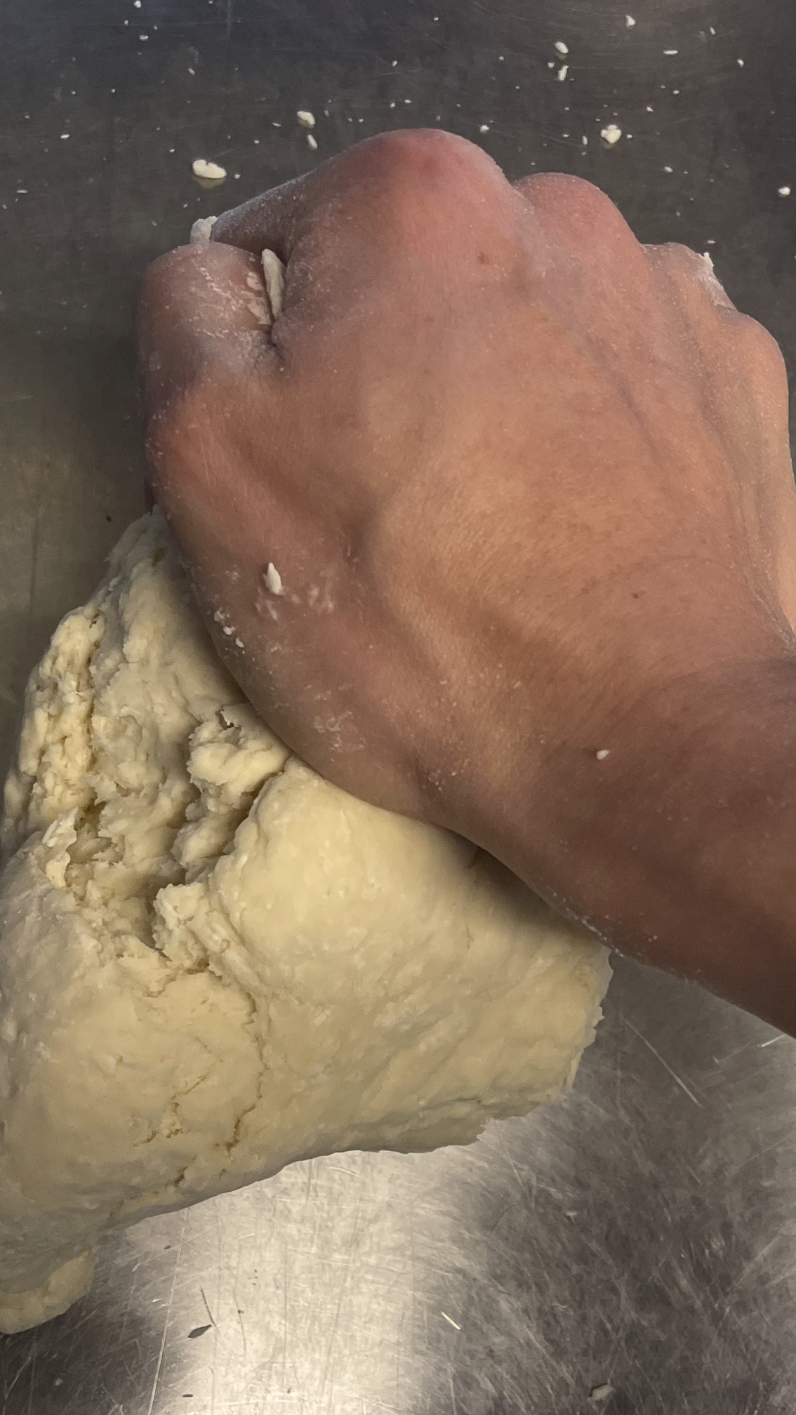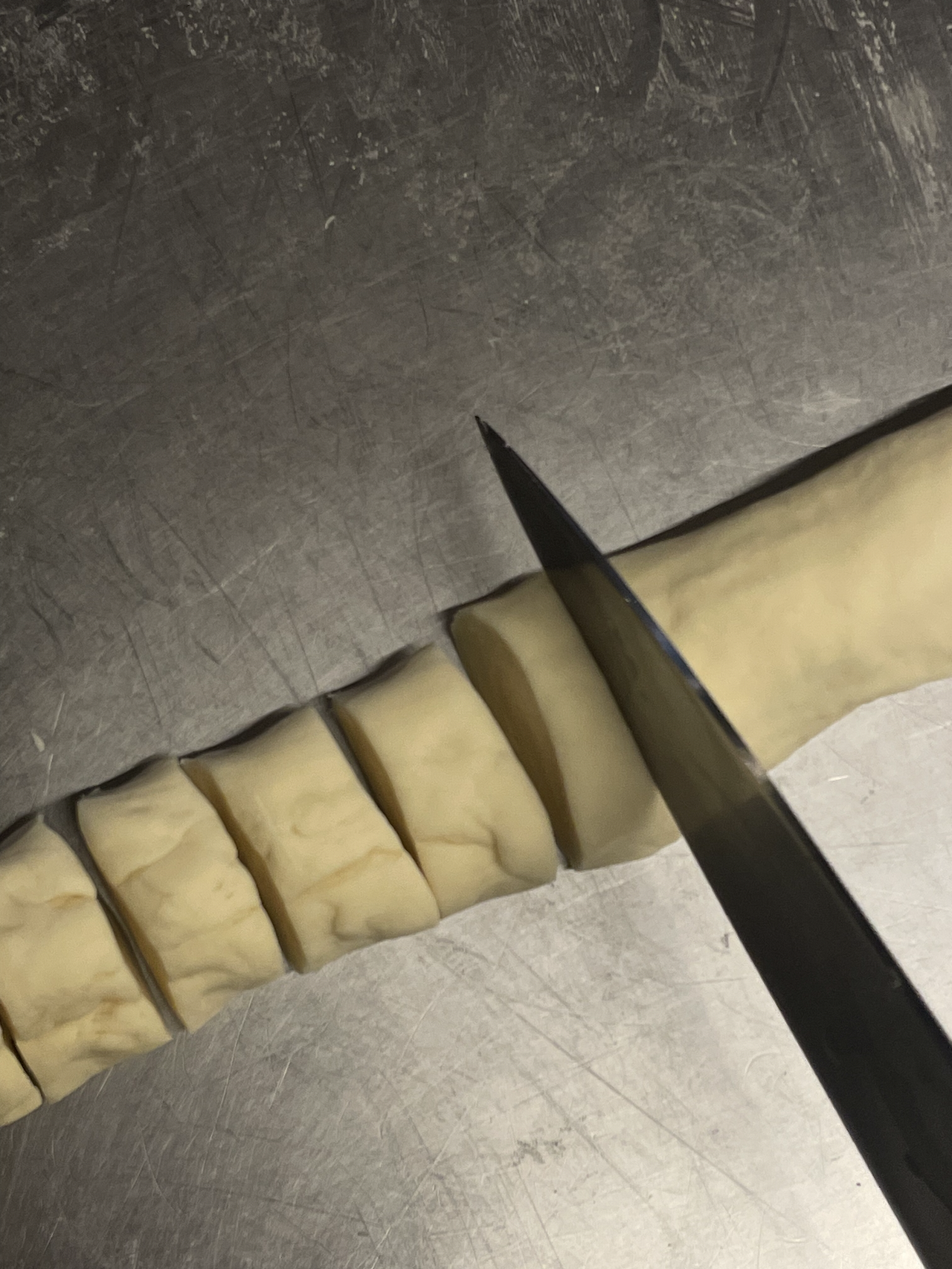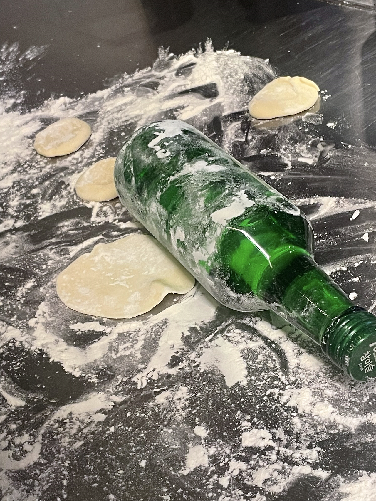 6. 이제 숙성된 반죽을 풀빵정도의 크기로 소분한 뒤 각자의 방법으로 얇게 밀어줍니다.
