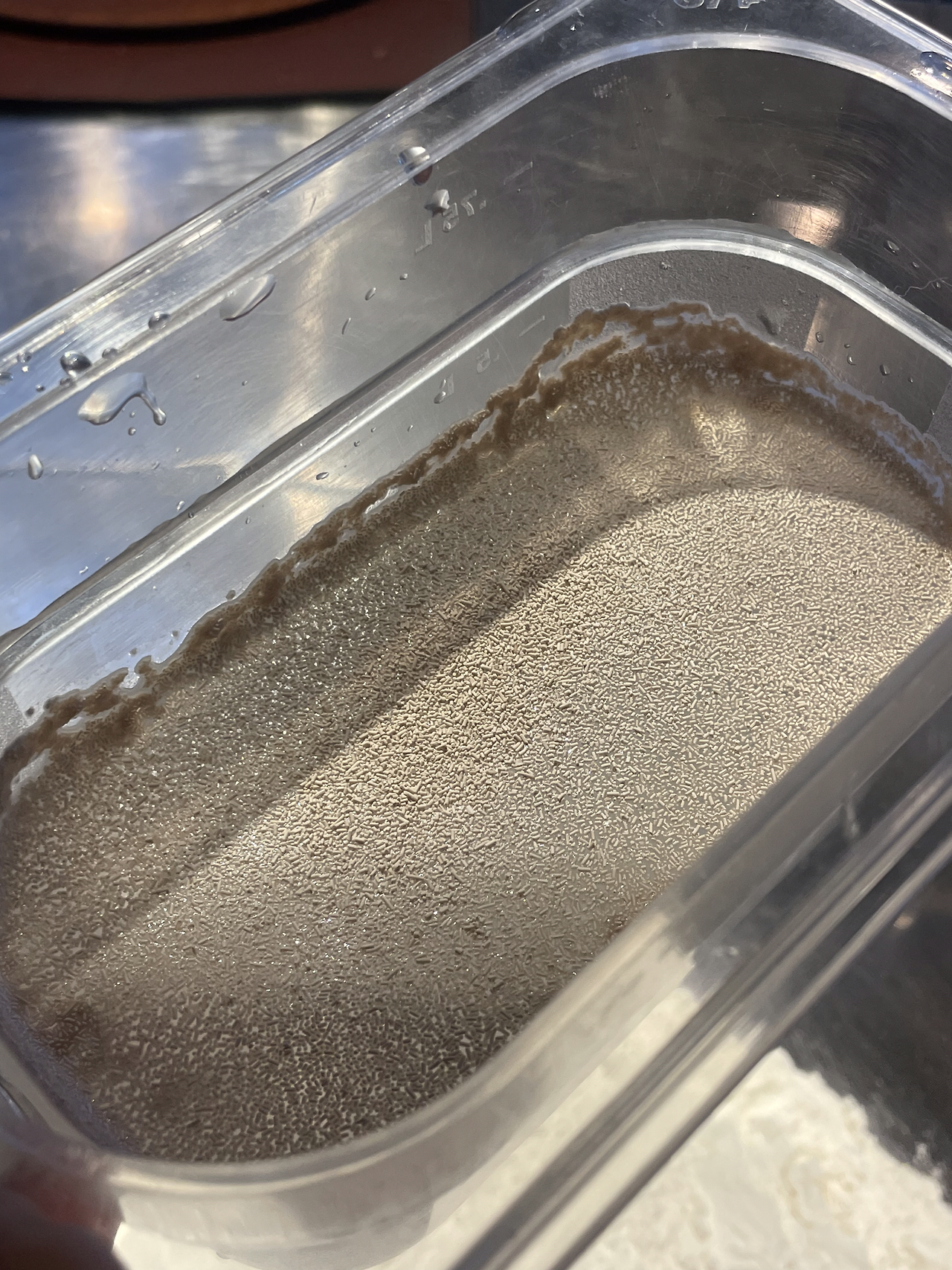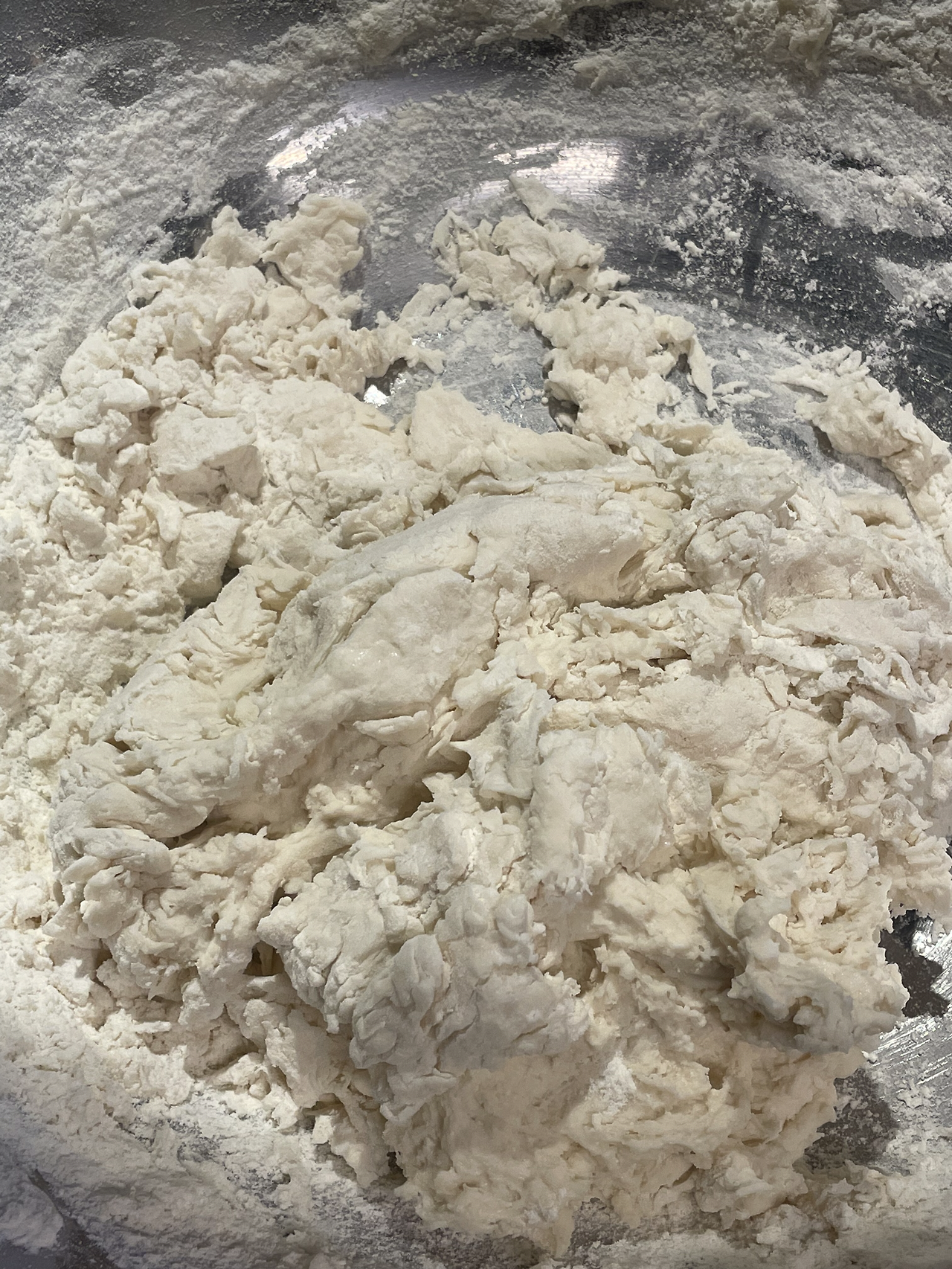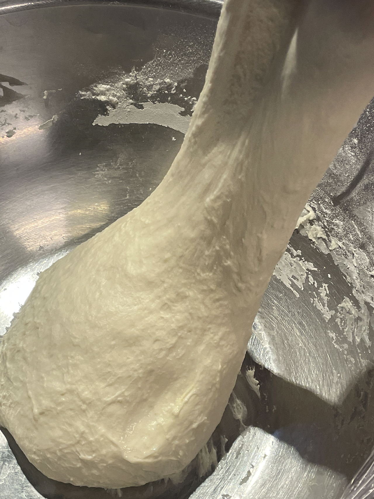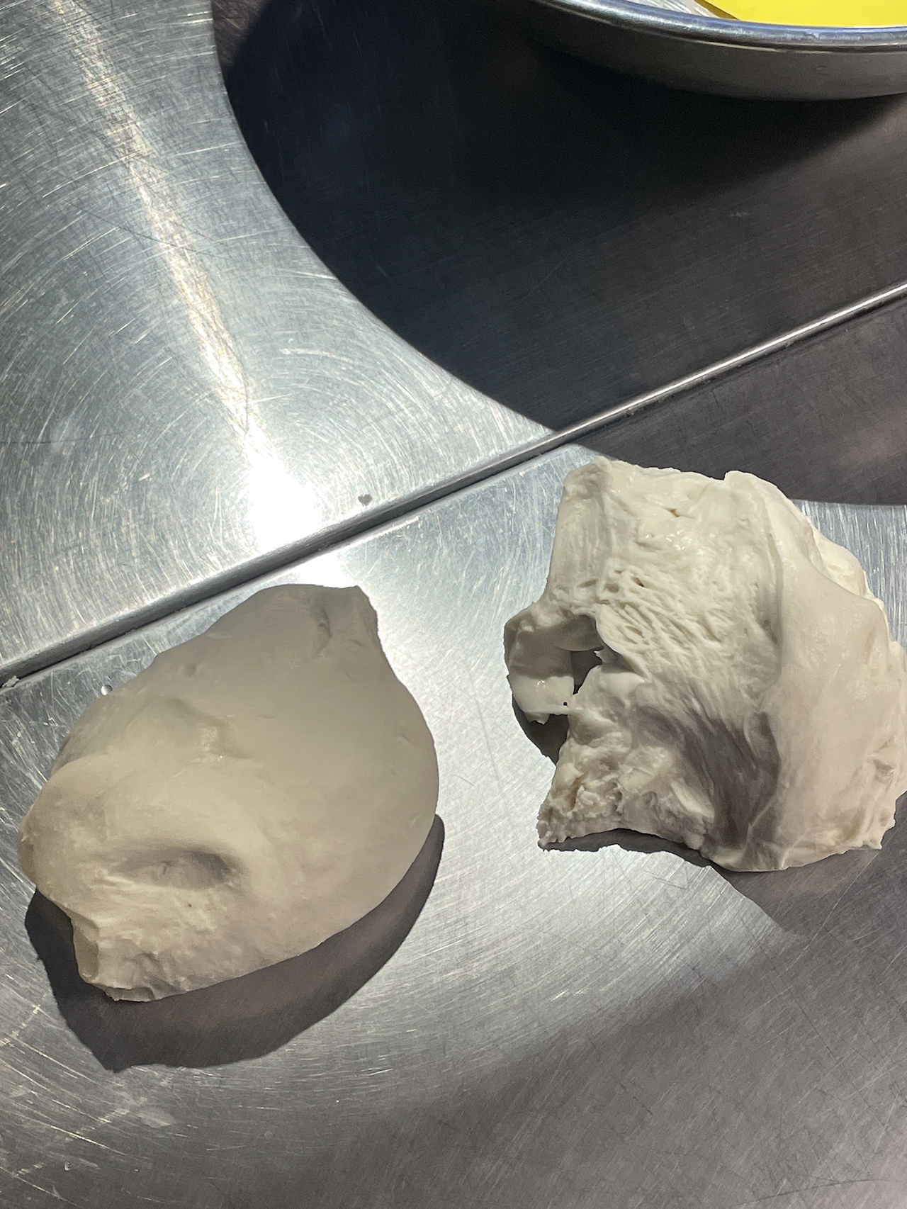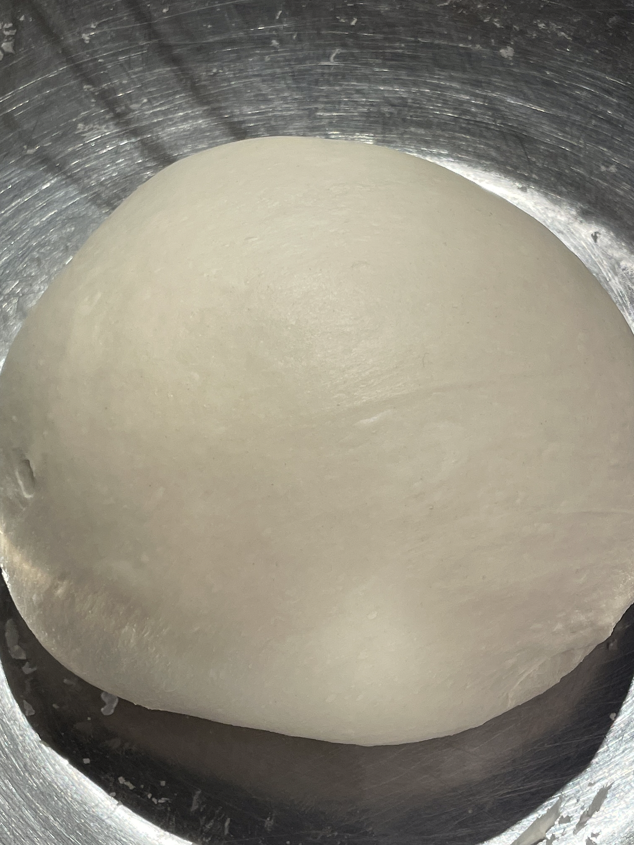 5. 발효가 시작되어 조금 부풀어 오르고 균질해진 반죽의 모습입니다. 마지막 폴딩을 거친 뒤 소분해 줍니다.