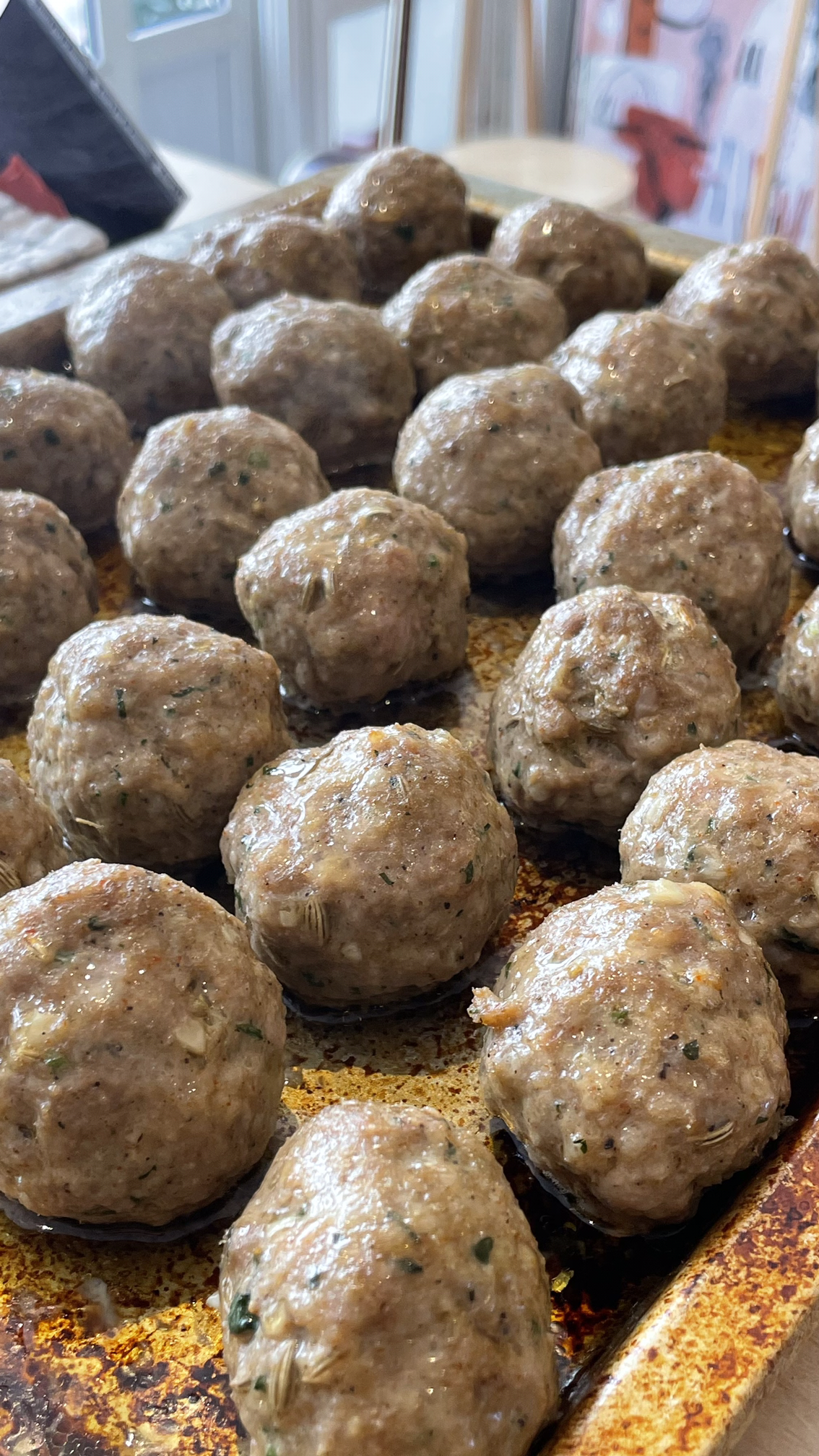 펜넬씨앗의 달콤하고 매운맛과 큐민향이 양고기 특유의 육향과 잘 어울립니다. 펜넬은 장을 깨끗이 하는 효능도 있으니 궁합이 잘 맞다고 볼 수 있겠네요. 미트볼 반죽을 만들 때는 항상 따듯한 물을 옆에 두고 섞어줍니다. 손이 너무 차갑거든요. 질척질척 촉감놀이를 하는 것 같습니다. 빵가루와 우유를 개어놓은 것은 그대로 먹어도 참 맛있습니다. 식빵을 우유에 찍어먹는 것이나 다름없으니까요. 참 이 레시피는 술안주로 구상한 것이라 간이 조금 셀 수 있습니다. 소금양을 조절해 주세요. 잘 구운 치아바타안에 미트볼과 토마토소스, 구운 양파를 넣고 샌드위치를 만들었는데 이것도 반응이 괜찮았습니다. 대용량으로 만들기 간편한 미트볼은 파티음식으로도 손색이 없습니다!