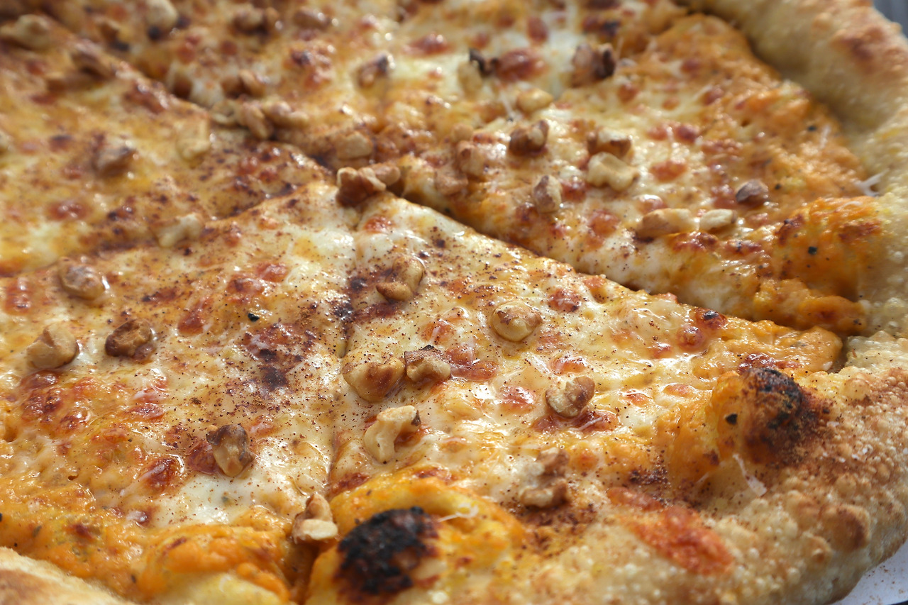 5화의 만능반죽을 이용해 피자를 구워도 좋습니다. 퓨레를 넉넉히 올리고 피자치즈와 파마산을 뿌려 300도에서 4분 구워준 뒤 호두, 꿀, 페코리노 로마노치즈, 시나몬 가루로 마무리했습니다. 달콤 짭짤한 맛과 호박의 은은한 향이 조화롭습니다.