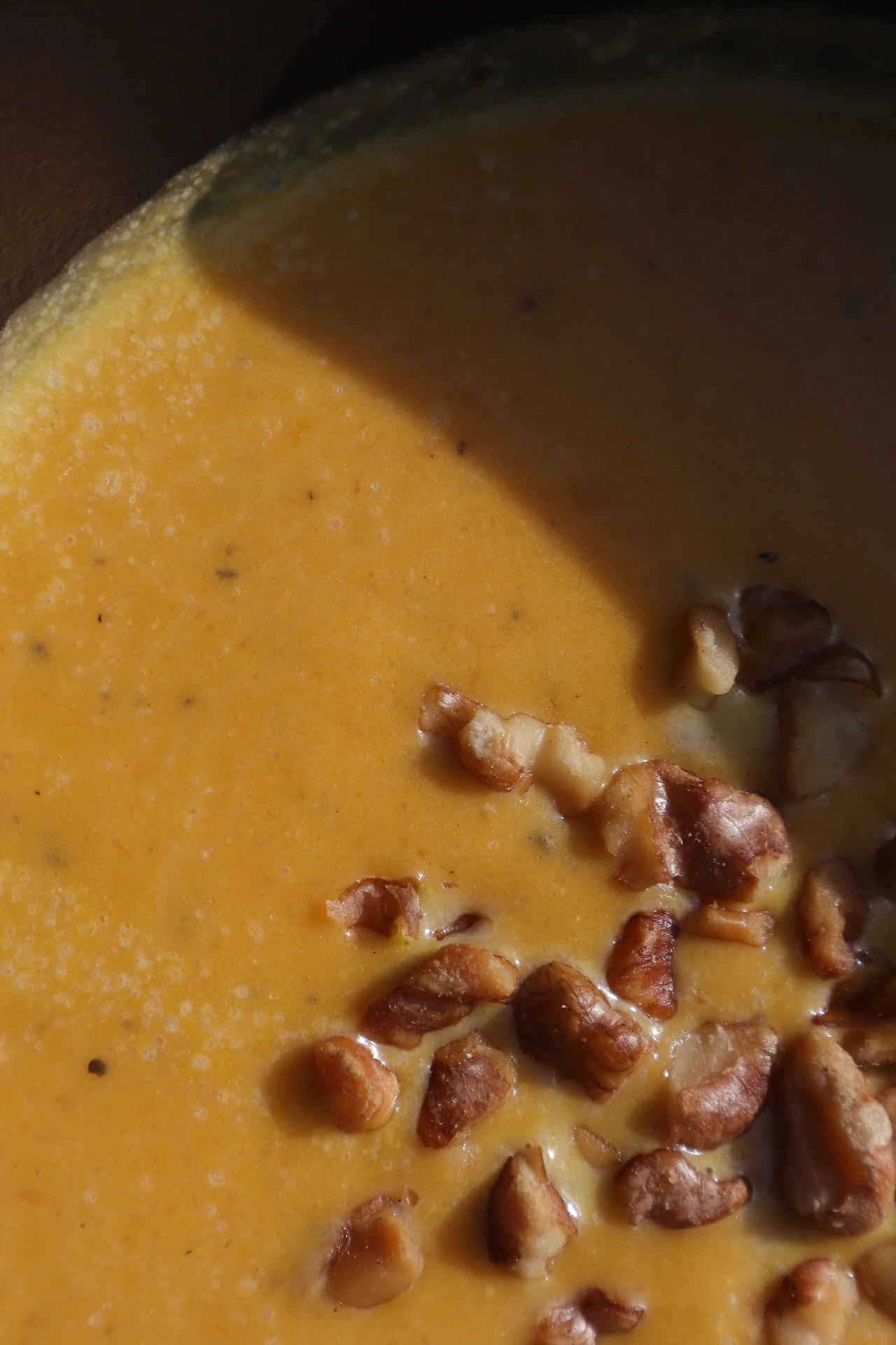이것을 그대로 그릇에 담아 구운 호두를 올려 수프로 먹어도 기가 막히고요.