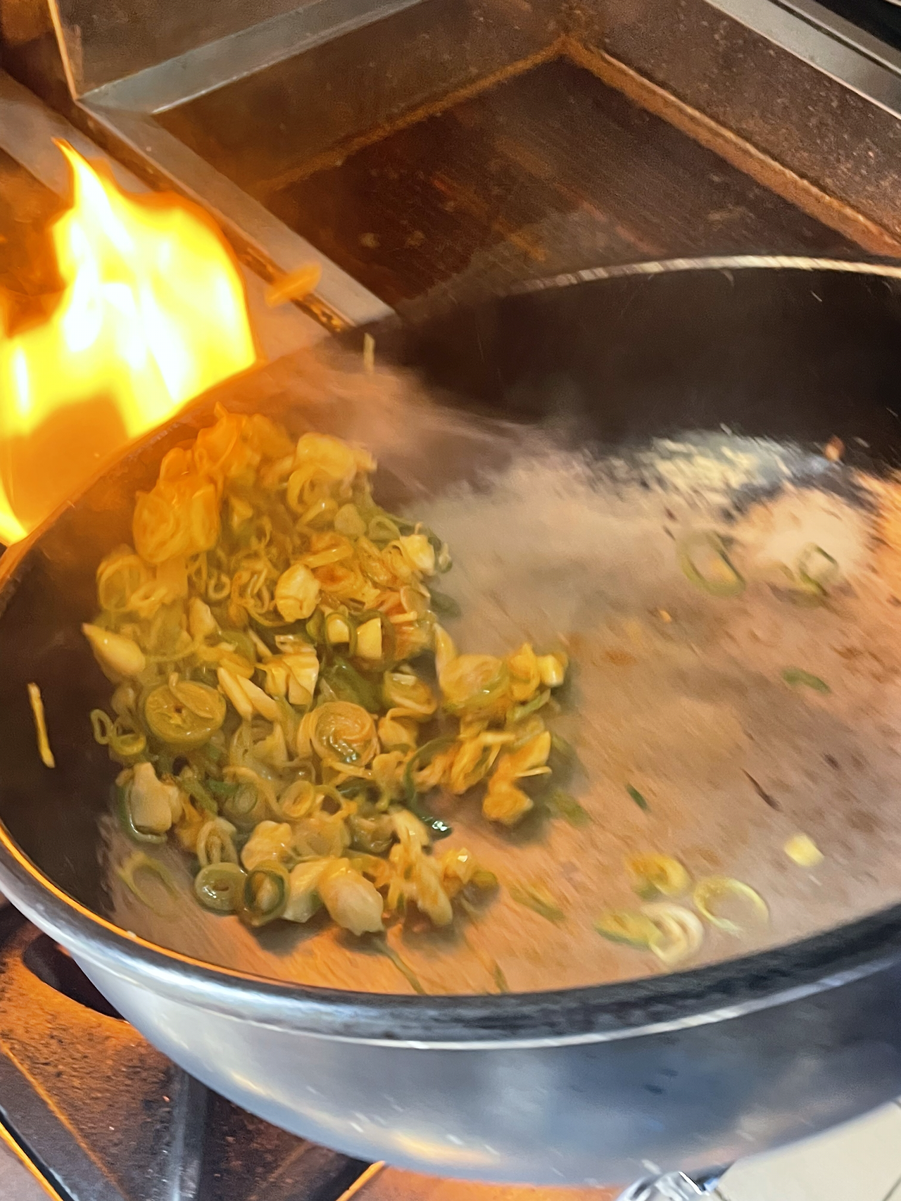 센 불에 볶아내는 중국의 음식들은 조리과정에서 향기가 변화무쌍합니다. 간장을 넣고 1초 후 치익 연기냄새가 나다가 다음 1초 후에는 팬에 들러붙어 지글거리며 단백질 타는 향기가 납니다. 그 임계점을 넘기지 않고 각 재료를 완벽한 타이밍에 투척하는 것이 이런류의 조리법이 재미있는 이유인 것 같습니다. 많은 양의 기름과 장에서 오는 깊은 감칠맛과 부차적으로 따라오는 느끼함을 알싸한 제피가루가 잡아주어 훌륭한 균형을 이룹니다.