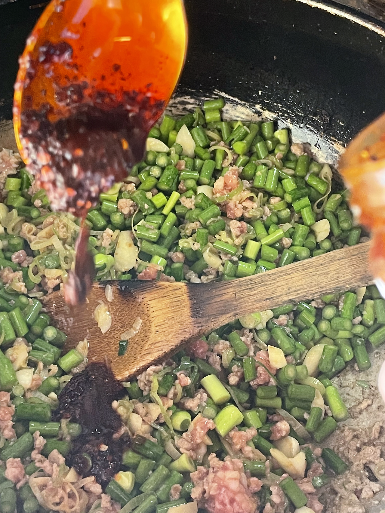 5. 중국의 국민소스인 라오깐마를 두 숟가락 듬뿍 떠 넣어줍니다.