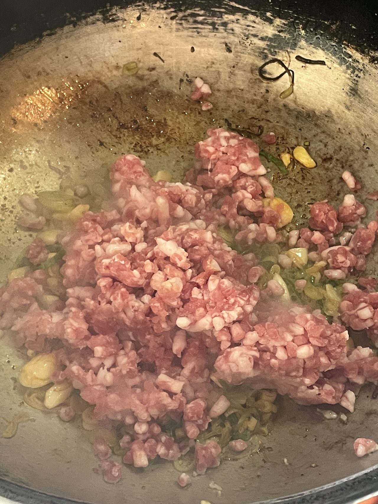 3. 다진 돼지고기에 소금과 후추로 간을 한 뒤 살짝 볶아줍니다.