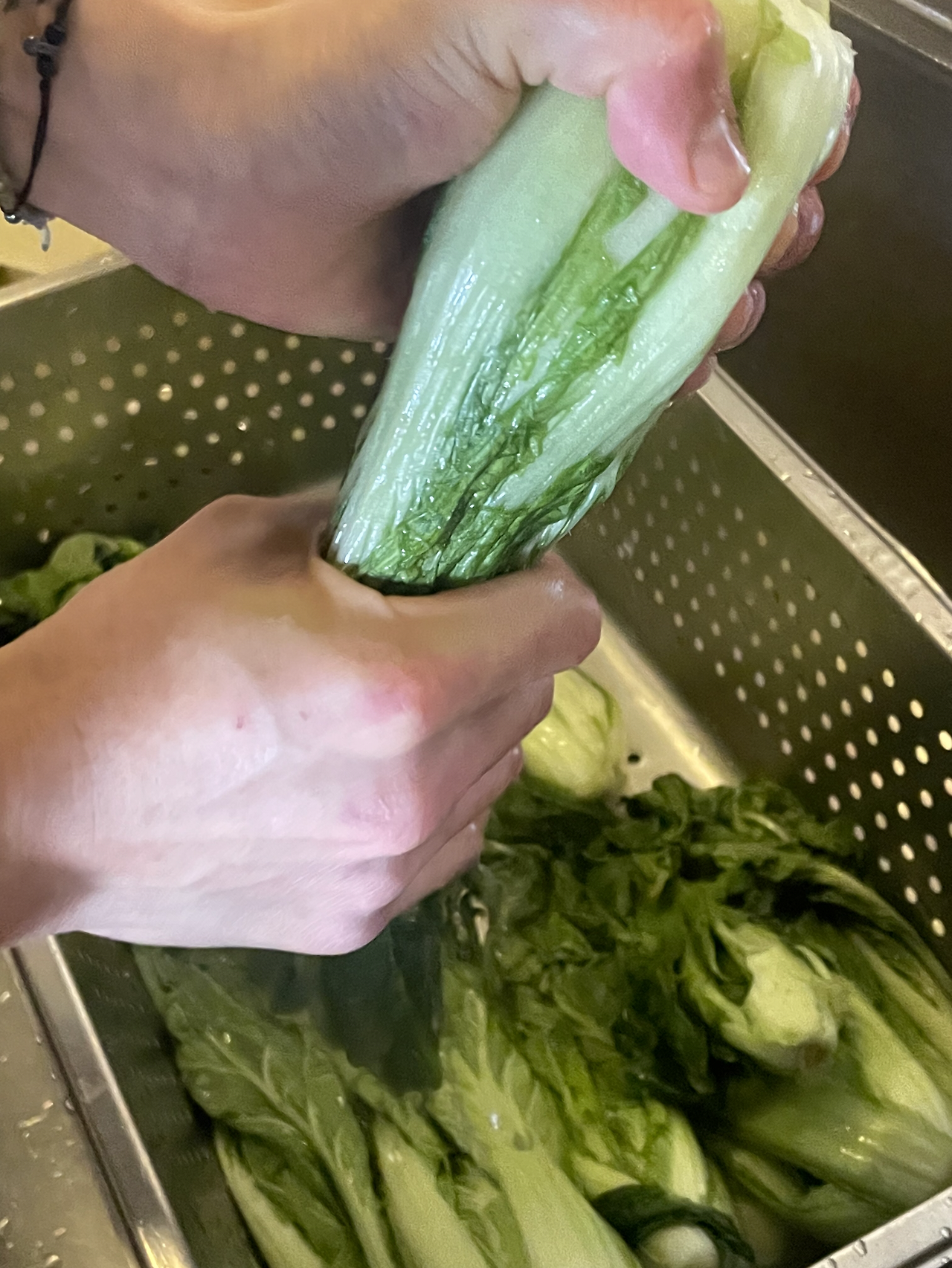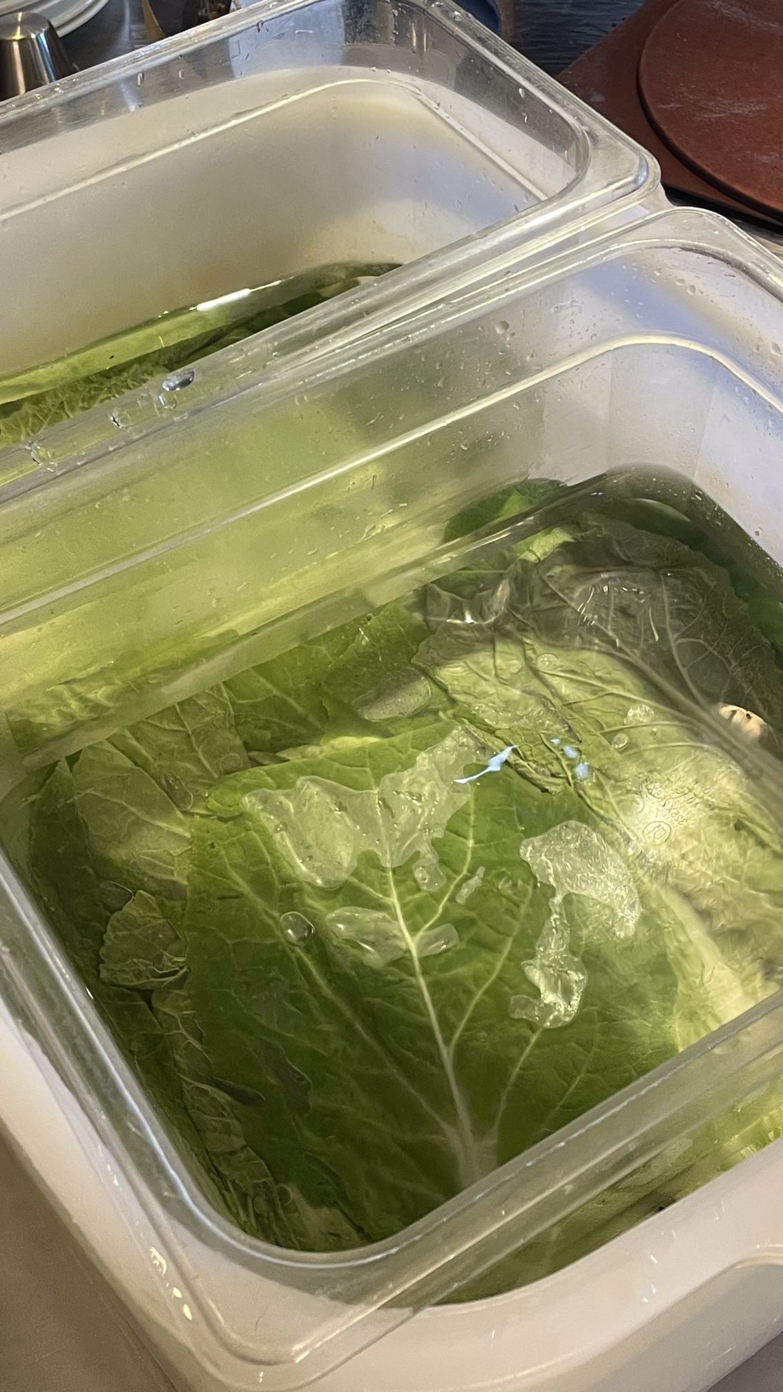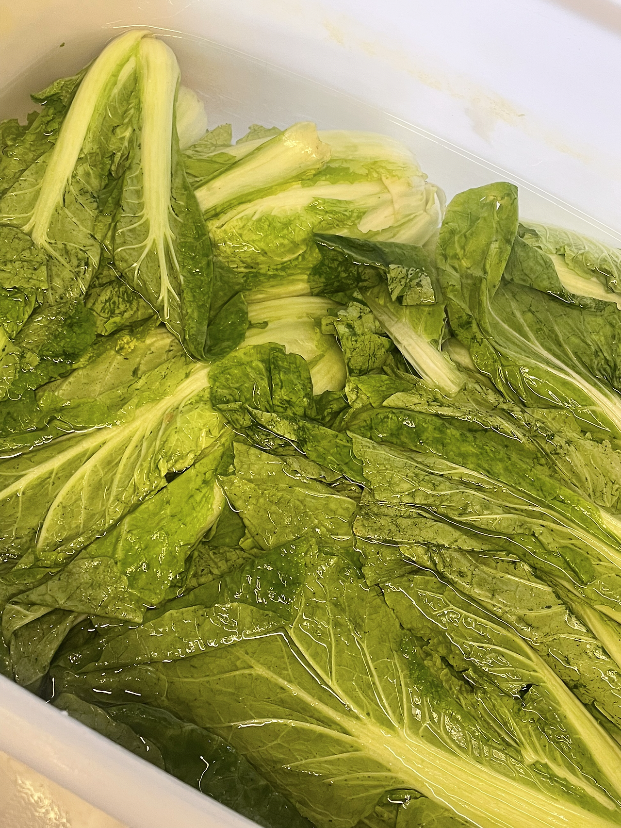 4. 다음날. 잘 절여진 배추를 살짝 헹궈 물기를 짜 줍니다.