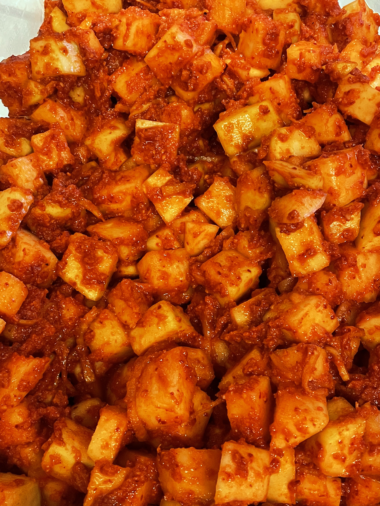 시원하고 아삭한 김치가 완성되었습니다. 김칫소가 많이 남아 깍두기도 만들었습니다.