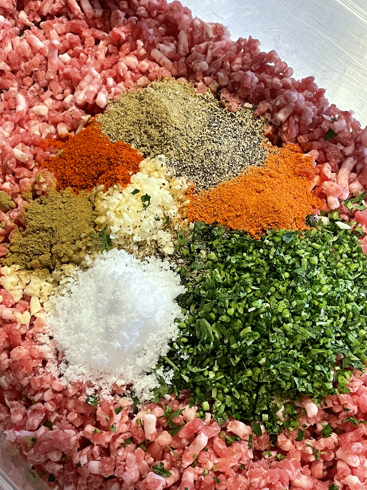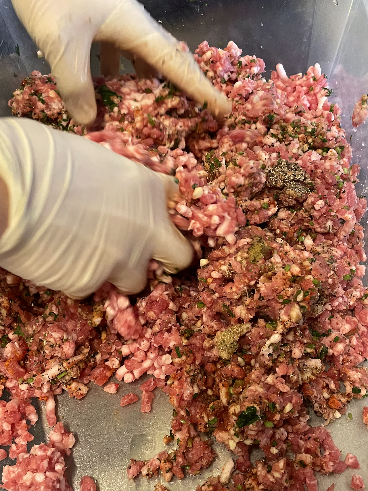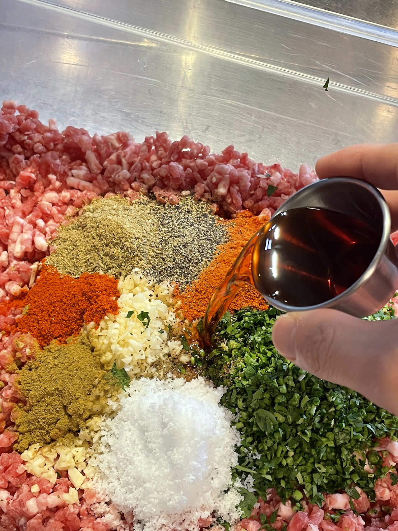 다진 돼지고기 2.3kg (또는 고기 1.8kg + 지방 0.5kg)