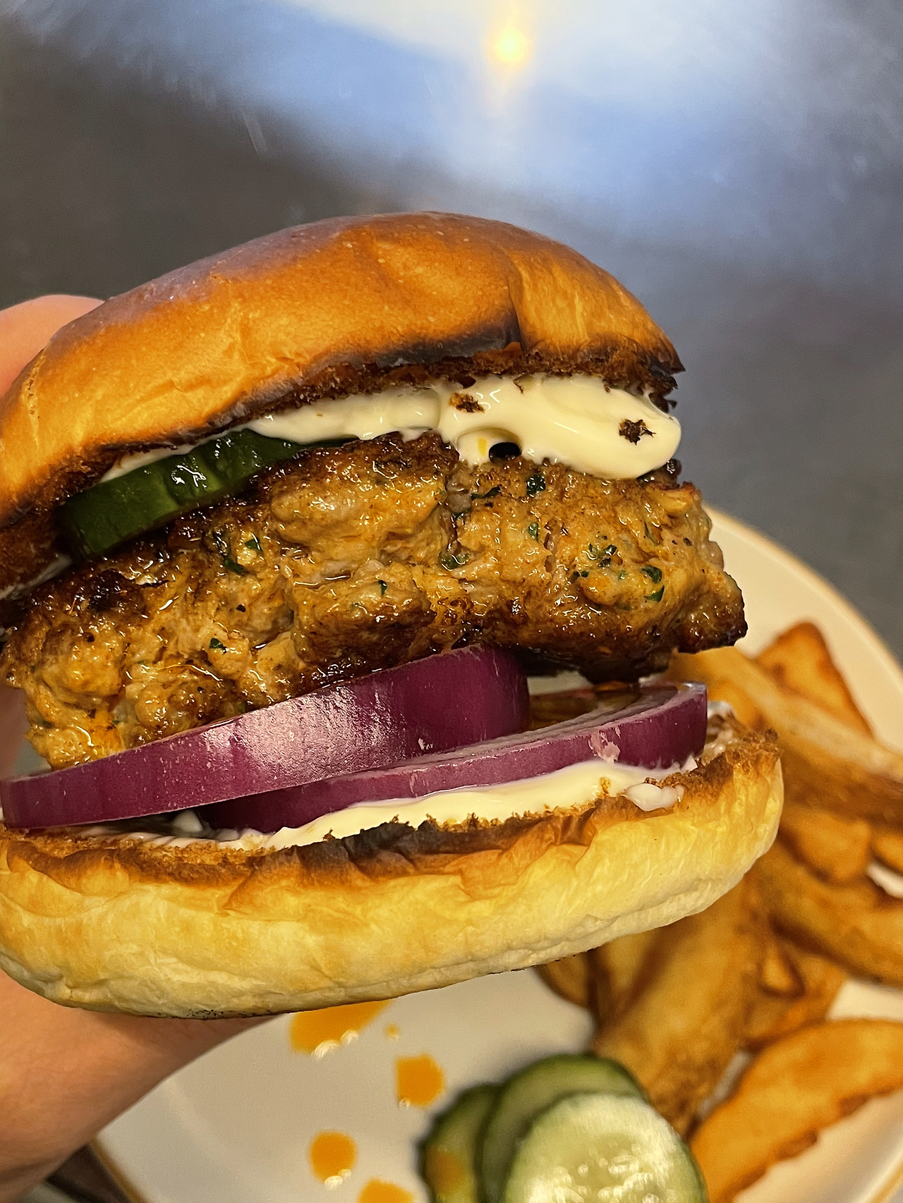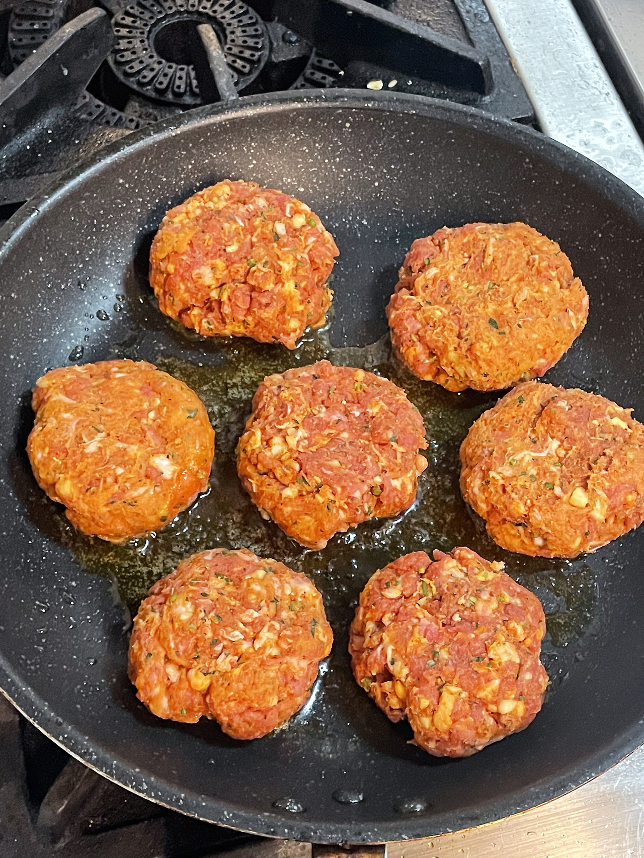 하루는 버거패티를 구워 햄버거를 만들어 먹었습니다.
