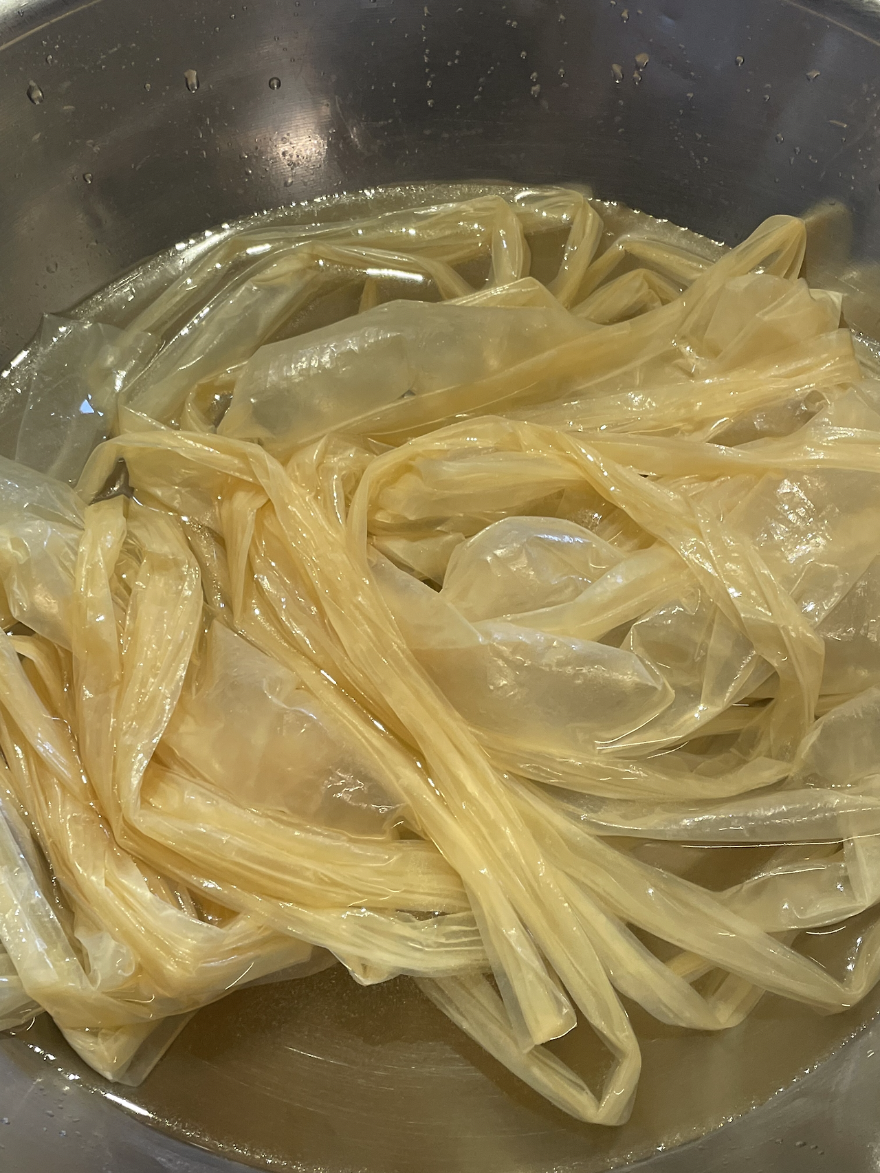 1. 소시지 케이싱을 풀어 물에 담가놓습니다. 쿠팡에서 구매할 수 있습니다.