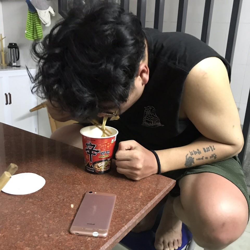 저녁거리로 근처 마트에서 신라면과 과자 몇 개를 사 집으로 갔다. 종인이를 깨워 핸드폰 개통을 하고 라면이나 먹자고 1층 주방으로 갔다. 집에 우리밖에 없어 꺼뒀던 불을 켠 순간, 발 밑으로 하나, 도마 뒤로 넷 냉장고 옆으로 둘. 꽤 많은 수의 바퀴벌레를 발견했다. 신발을 신고 있더라면 별로 무섭지 않았겠지만 맨발로 다닌 난 잽싸게 의자 위로 올라갔다. 배는 고프니 꾸역꾸역 집어넣는 라면과 약 5시간의 운전으로 홀라당 타버린 허벅지, 테이블에는 이름도 모르는 7만 원짜리 중고폰, 결의의 찬 주먹까지. 이날은 찍어둔 사진이 별로 없어서 그냥 받아 놓은 건데도 가만 보니 이 하루가 담겨있었다. 별로 한건 없지만 재밌었던 동허이, 오늘 하룻밤 더 자고 내일 새벽에 다낭으로 향한다. 종인이는 여전히 경찰 걱정이다. 잠이나 자자.