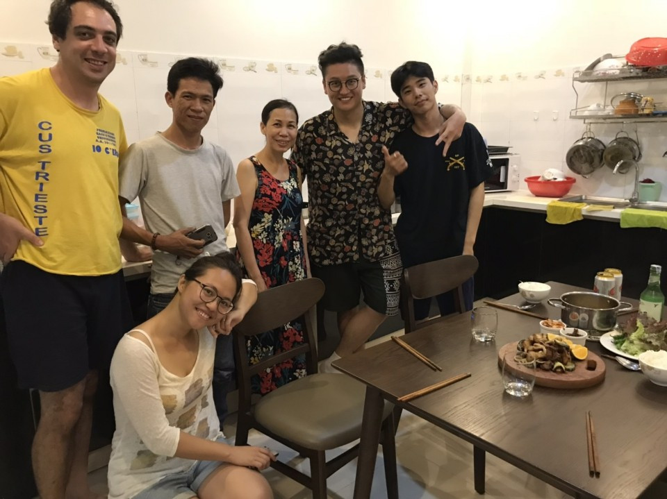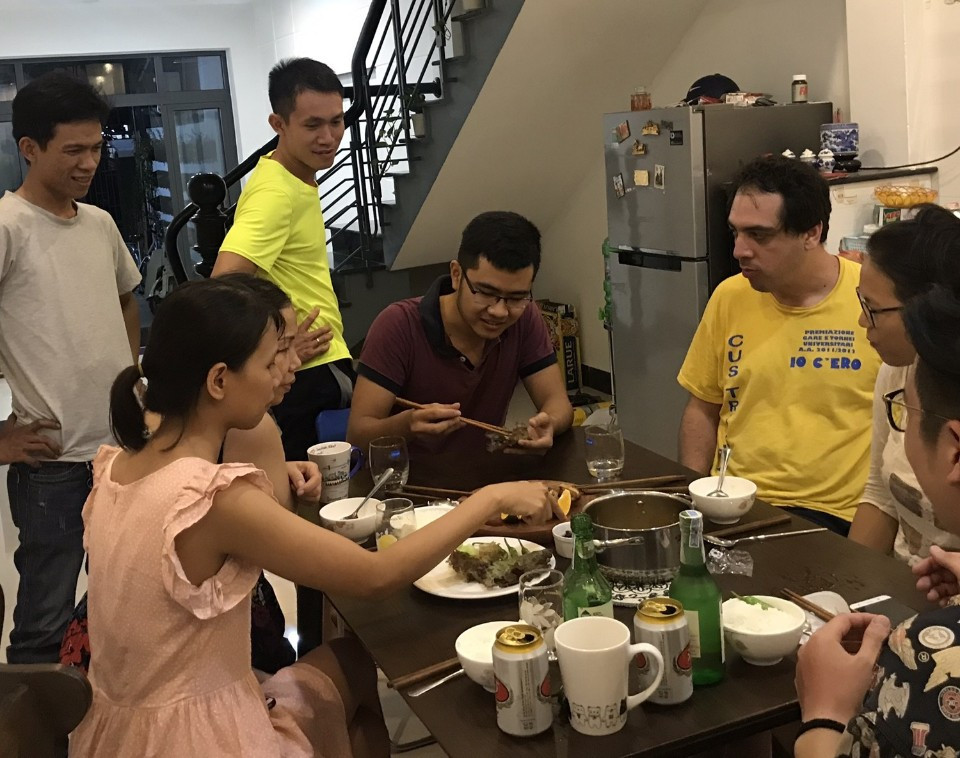 좋아 오늘 꿀잼 파티 각이다. 만드는 음식들을 간단히 소개하면서 자연스레 여행 이야기로 넘어갔는데 재미나게도 이 아주머니 남편분이 이탈리아분 이시란다. 피렌체에서 거주하시고 지금은 친구인 Thu아주머니네 집에 잠시 놀러와 휴식을 즐기는 중이라 하셨다. 이 아주머니와 함께 이탈리아 사람들에 대한 험담 아닌 험담을 하며 고기를 구웠다. 음식이 거의 준비되어 혹시 몰라 가족들에게 조심스레 여쭤봤다.